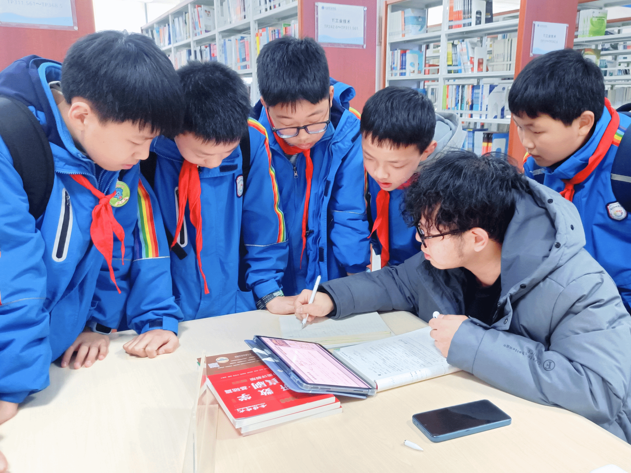 安静的图书馆充满了浓厚的学习氛围,小小体验官们的到来非但没有打破那一丝宁静,反而被琳琅满目的书目所吸引,一边翻找一边默念“好多书啊”!据悉,移通学院图书馆现有纸质藏书37万余册,从古老的经典到最新的畅销书,从深奥的学术著作到轻松的文学作品,能够一一满足读者需求。一名正在图书馆上自习的移通学子主动为小朋友介绍起关于抛物线的知识,他们不懂但又认真的样子展示出了他们丰富的求知欲。