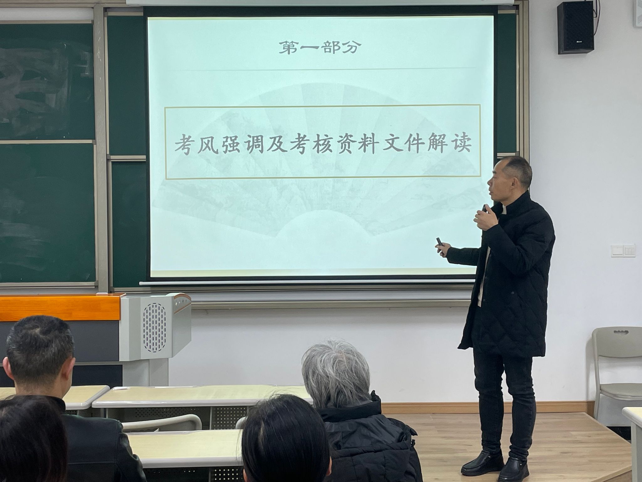 会议伊始,王国树副院长针对考风问题进行强调,并对本学期新发布的课程考核管理规定及相关资料文件进一步进行了详细解读。他强调课程考核的各个环节,均需具备严谨性和规范性,以确保期末考核能够公平、公正地评估学生的知识掌握程度。同时,他还向专任教师明确了监考工作的职责和要求,以确保期末考核工作顺利进行。