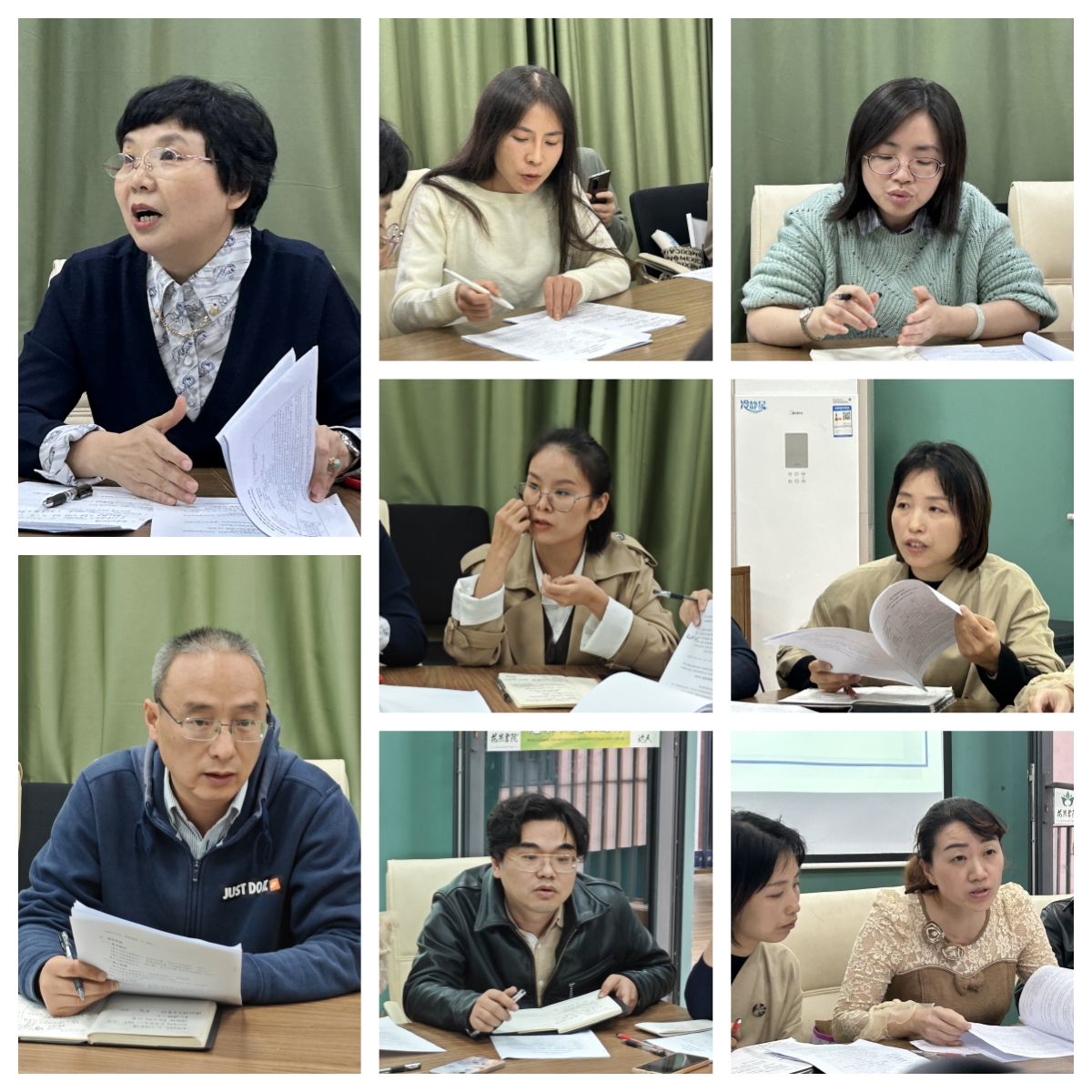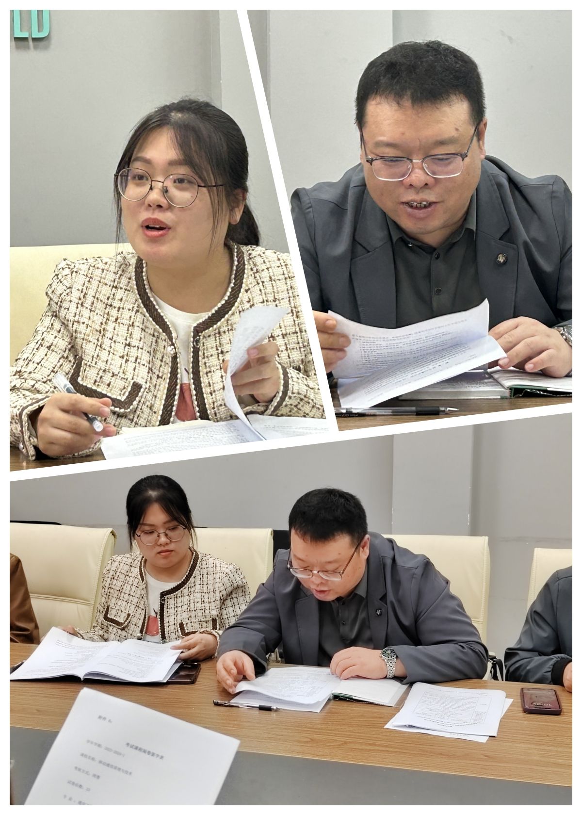 其他与会老师也积极提出交叉审阅意见,并讨论问题解决方案。每位参会老师都进行了评阅及意见的提出。例如:知识目标的细化;能力目标需与培养方案统一;如何合理进行学时分配;课程简介的去口语化;专业用词的统一及部分明显错误等等。