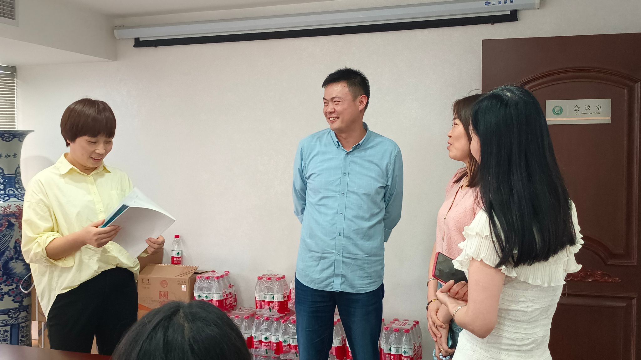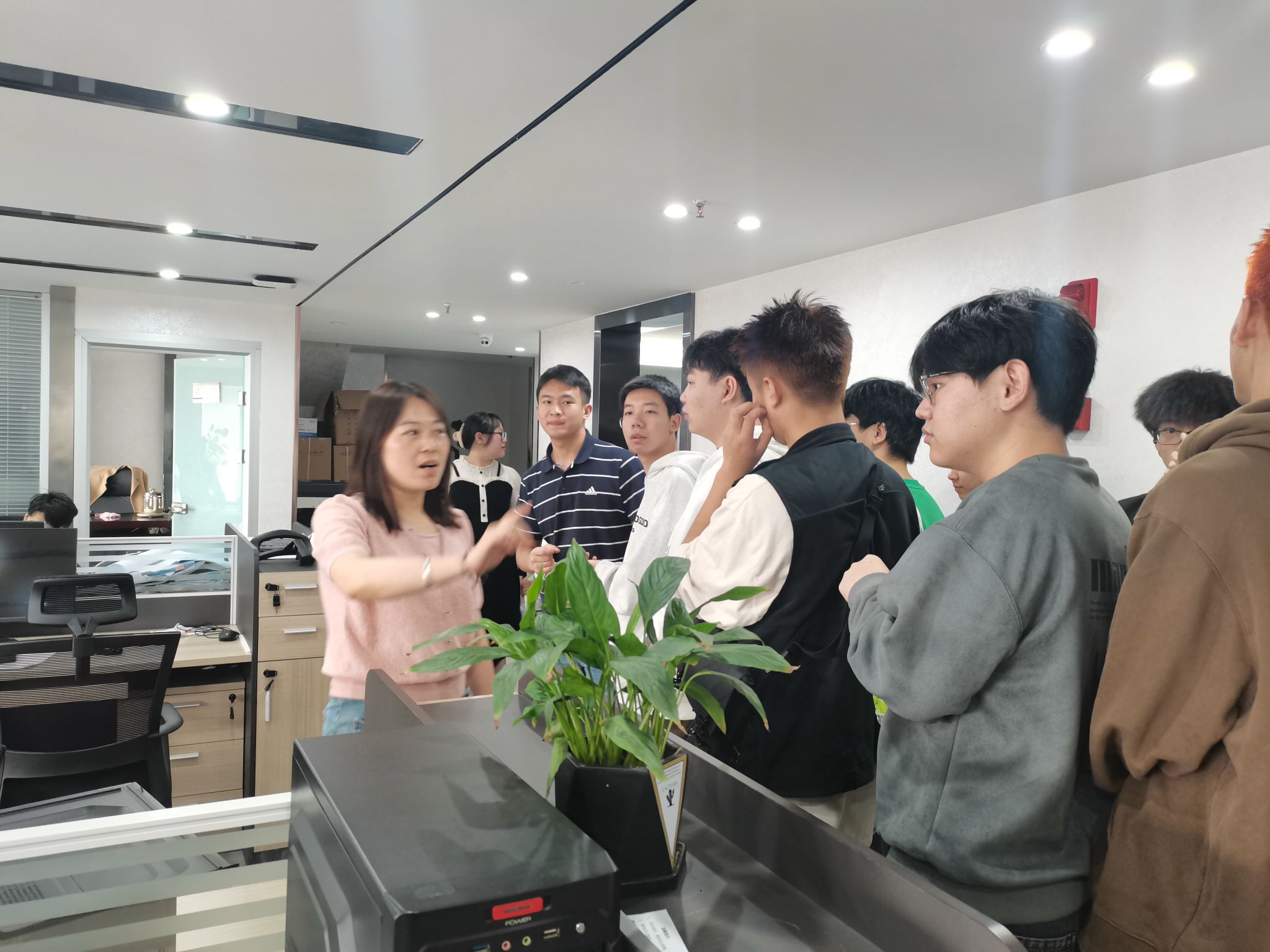 此外,同学们还参观了该企业的设备室和会议室,在会议室陈总设计师和同学们进行了深入的交流,她先对公司进行了简单的介绍;然后她讲述了自己从一个普通的技术工人通过不断努力最后成为该公司的总设计师的工作历程,这对我们即将踏入社会的同学来说是一个宝贵的经验;最后她介绍了她们公司承接的一些项目,在她的讲解中,同学们了解到输变电工程在城市建设中的重要性,对于城市电力的稳定输送具有极为重要的意义。