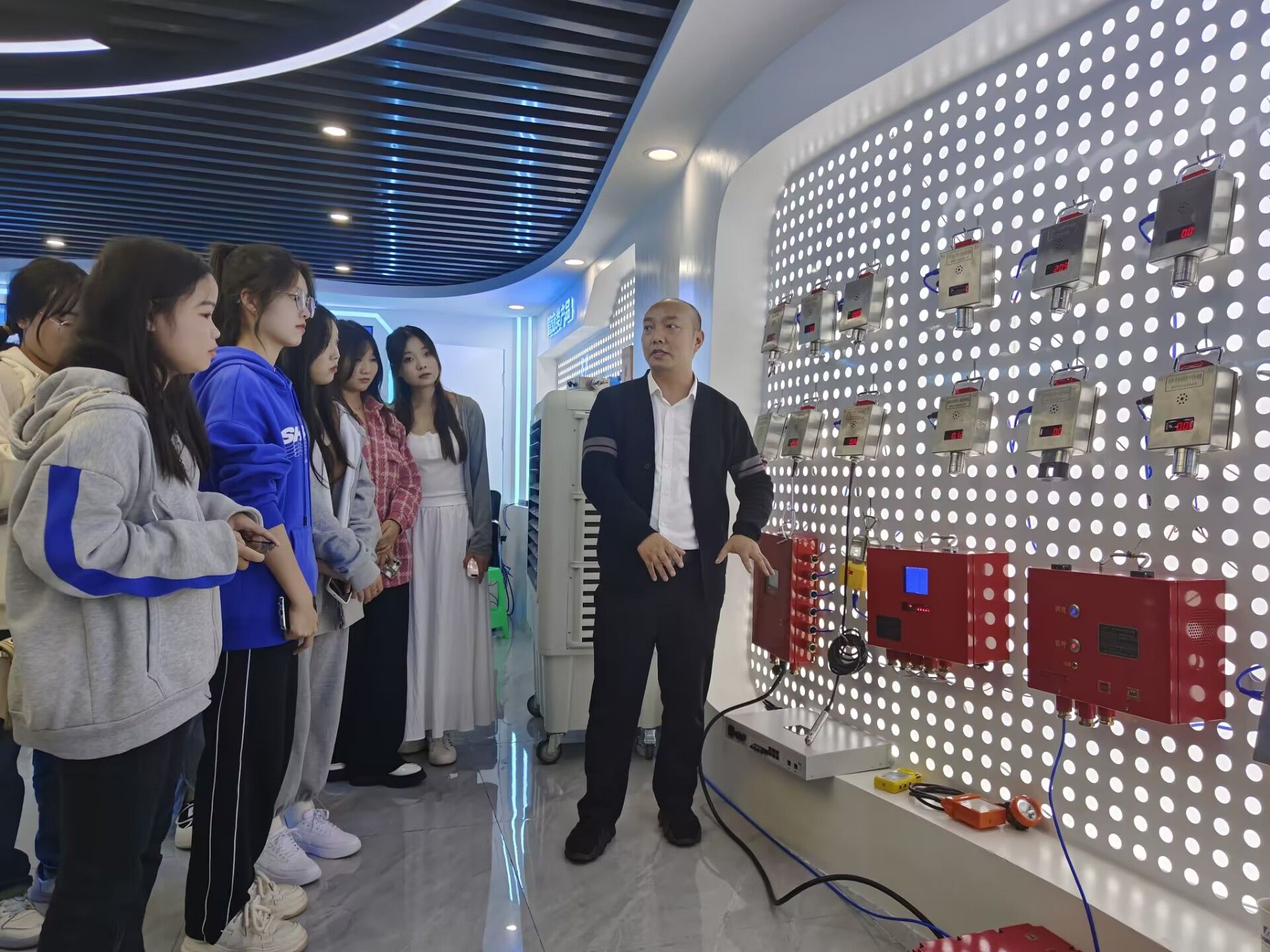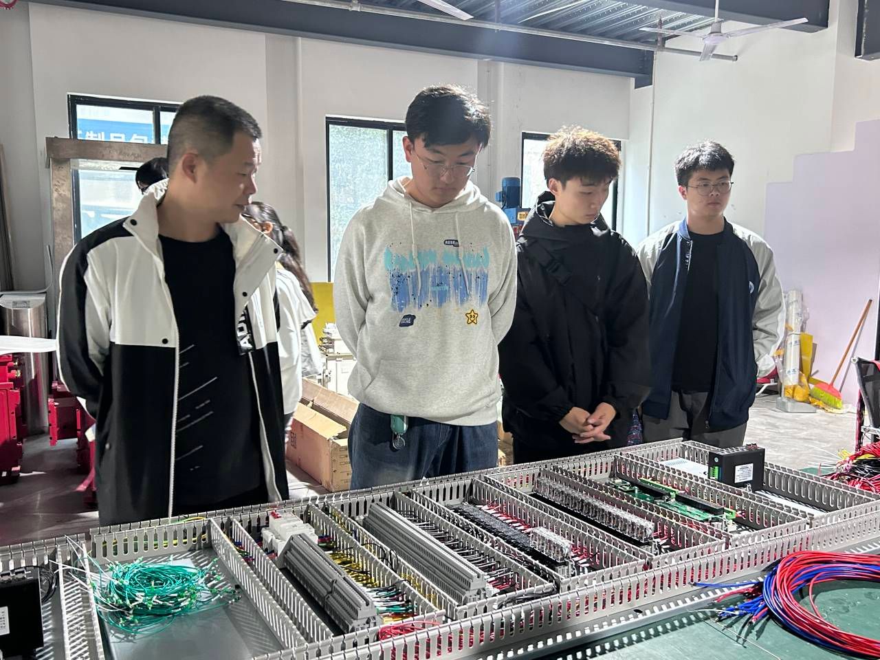 在对企业初步了解后,张总和王总带领学生们参观了一楼自动化制作管廊和通讯板的组装、二楼软件研发部(智慧园区建模与精确人员定位系统软件视频)、三楼的生产车间,每一个区域都打开了学生们对专业知识的好奇大门,这不仅提供了一个学习的平台,更赋予了大家奋发向前的动力。