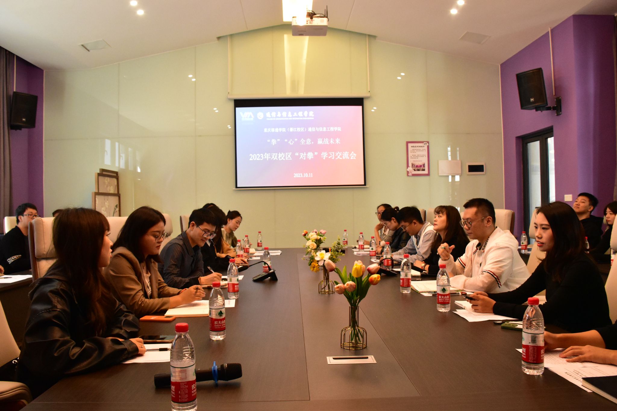 为促进学院双校区之间的互动联系,提高双校区师生工作实效,通信与信息工程学院于10月11日上午10:30在观云书院小雪 会议室开展了双校区“对拳”交流会议。学工副院长熊斌老师、团总支书记孙怡老师(合川校区)、团总支书记田海燕老师(綦江校区)以及合川校区辅导员代表、綦江校区全体辅导员、学院团学组织主席团成员参与会议。