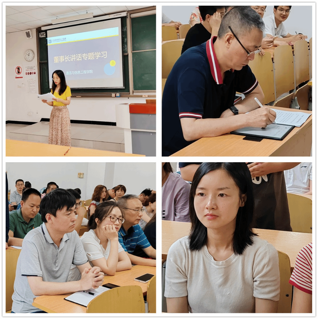 6月28日下午,通信与信息工程学院院长李文娟在4305主持召开了董事长讲话专题学习交流会,全院教师围绕彭鸿斌董事长的重要讲话精神开展研讨交流。