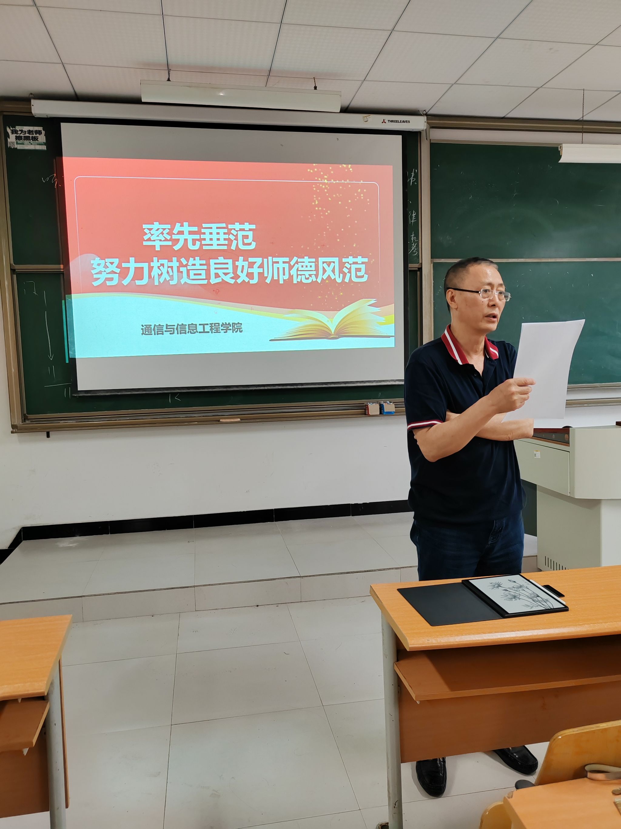为学习贯彻习近平总书记关于教育的重要论述和指示批示精神,进一步加强学院教师师德师风建设,全面提升教师素养与教学质量,通信与信息工程学院于6月29日召开“师德师风学习”教育主题会。会议由副院长唐林建主持,学院全体教师参加。