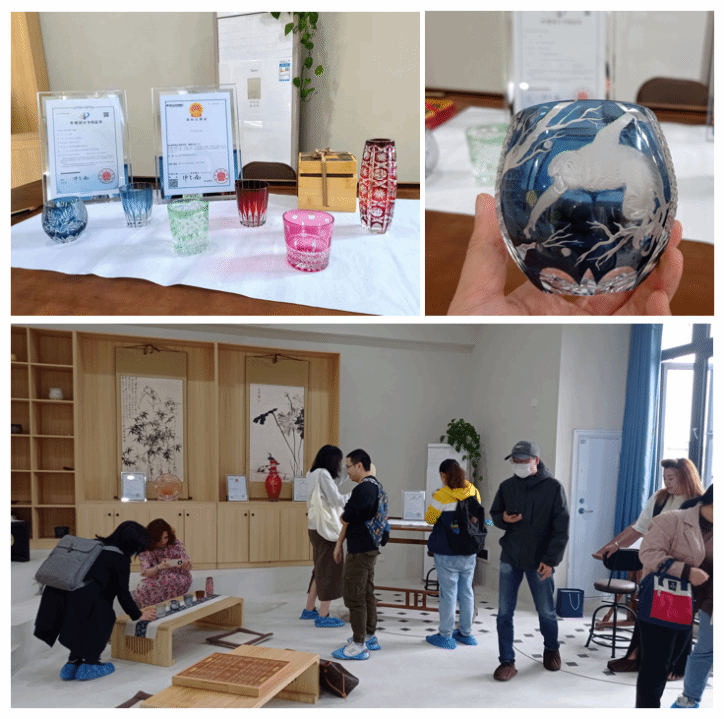 会议结束,大家在天空书院(中华传习所)参观了洋桥玻璃公司展出的玻璃艺术产品,包括:黛玉葬花、重庆朝天门、花插杯、生肖杯、等产品。