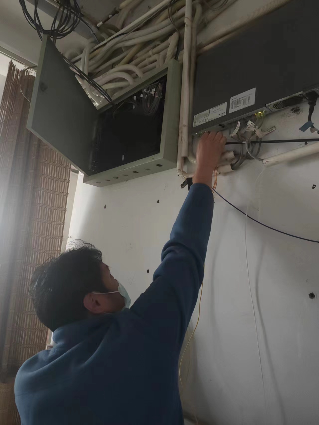 2022年11月21日早上,网信中心收到南湖书院学生反馈网络不佳不能正常进行网课,在疫情防控期间,电信公司不能入校排查故障,通信与信息工程学院临危受命,协助网信中心保证南湖书院学生网络正常。通信与信息工程学院院长李文娟将此项工作交给通信技术教研室高级工程师王微昕老师全权负责,此时,正是廊桥书院解封后的第二天,也是王微昕老师从11月8日以来收到的另一项任务。