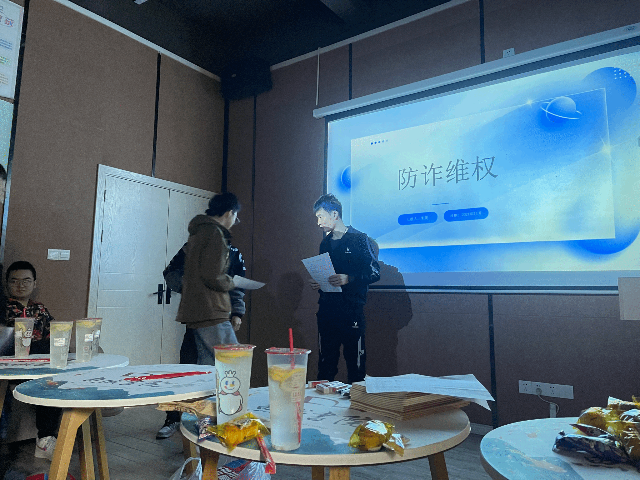 2024年11月22日12:30时,2024级通信工程专升本07支部在鱼城书院空格影音室开展了以“防诈维权”为主题的完满超级团支部活动。同学们通过对防诈骗手段和对其进行维权的知识讲解,本次完满超级团支部活动,旨在激励同学们对当代诈骗手段的深刻认知与防范,理解到当代社会的发展现状,学会利用法律手段去维护自身利益,意义是树立防范意识,理性面对诈骗情况,热爱这个充满秩序与公正的世界。