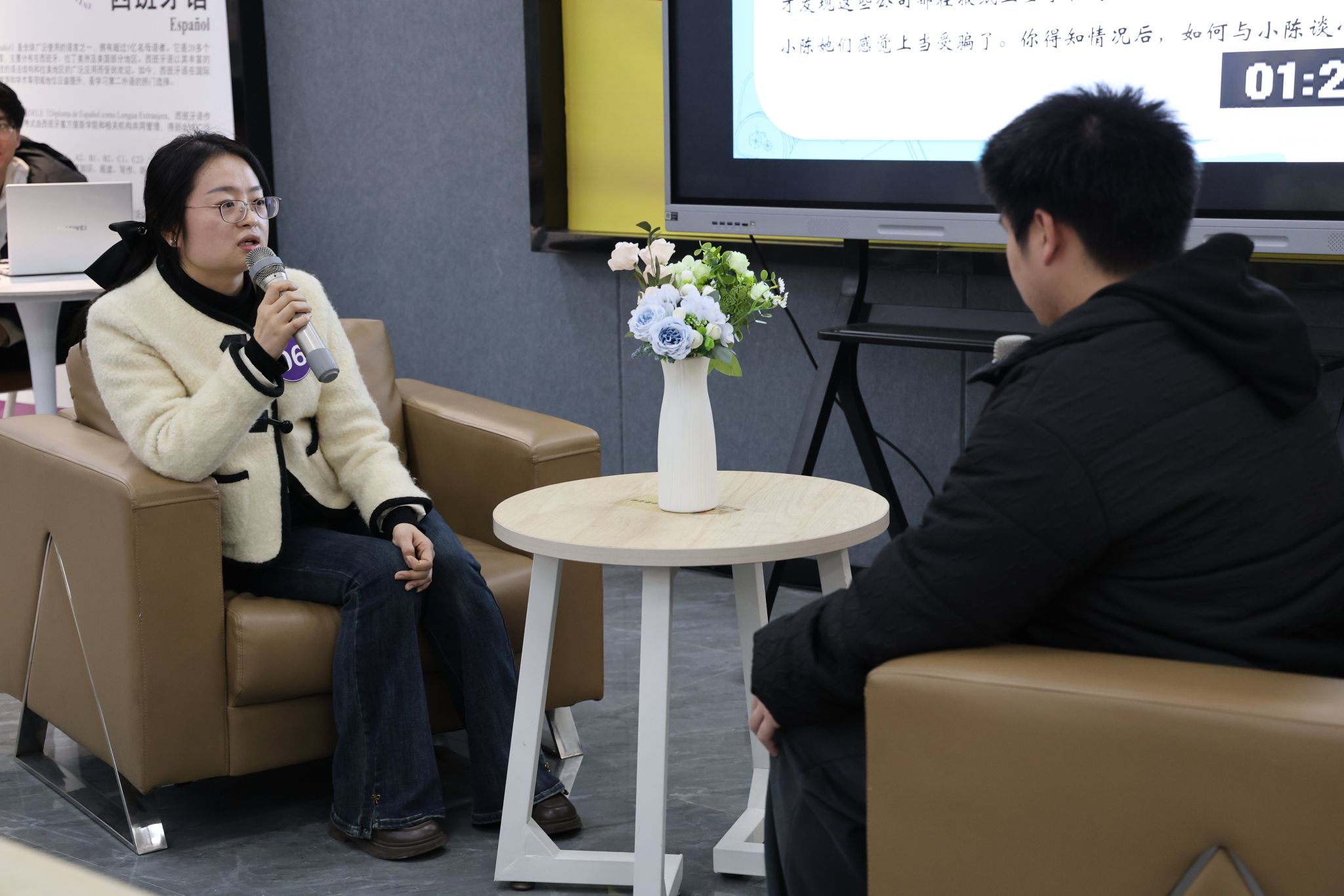 此次辅导员技能大赛的决赛分为案例研讨和谈心谈话两个环节。在案例研讨环节,选手们提前抽取小组,比赛以 “我提问,你回答” 形式展开。同组选手通过精彩纷呈的问答交锋,结合工作职责和学生成长成才规律进行多维思考,生动地再现学生工作情境,对案例进行深度剖析,展现了辅导员教育指导和解决实际问题的专业能力。评委们认真倾听,依据提问的精准度与作答的全面性、逻辑性等进行评分,现场气氛热烈,思维碰撞精彩纷呈。