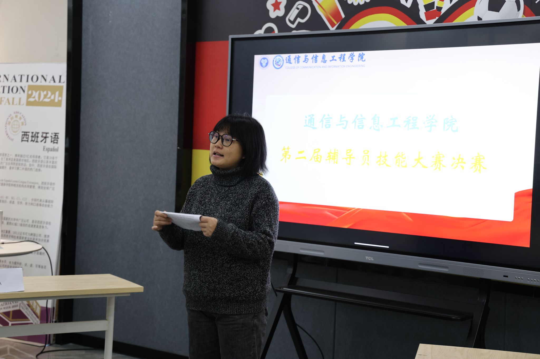 为深入学习贯彻习近平新时代中国特色社会主义思想,全面贯彻落实党的二十届三中全会精神及全国教育大会精神,进一步强化辅导员的理论水平、职业能力和专业素养,提高辅导员队伍建设水平,12月13日上午,通信与信息工程学院第二届辅导员技能大赛决赛在南湖书院中德创意工坊成功举办。本次决赛特邀通信与信息工程学院学工副院长熊斌、淬炼商学院学工办主任廖进、远景学院学工办主任王诗颖、通信与信息工程学院就创办主任李林燕担任评委,决赛由通信与信息工程学院辅导员龙涛老师主持。