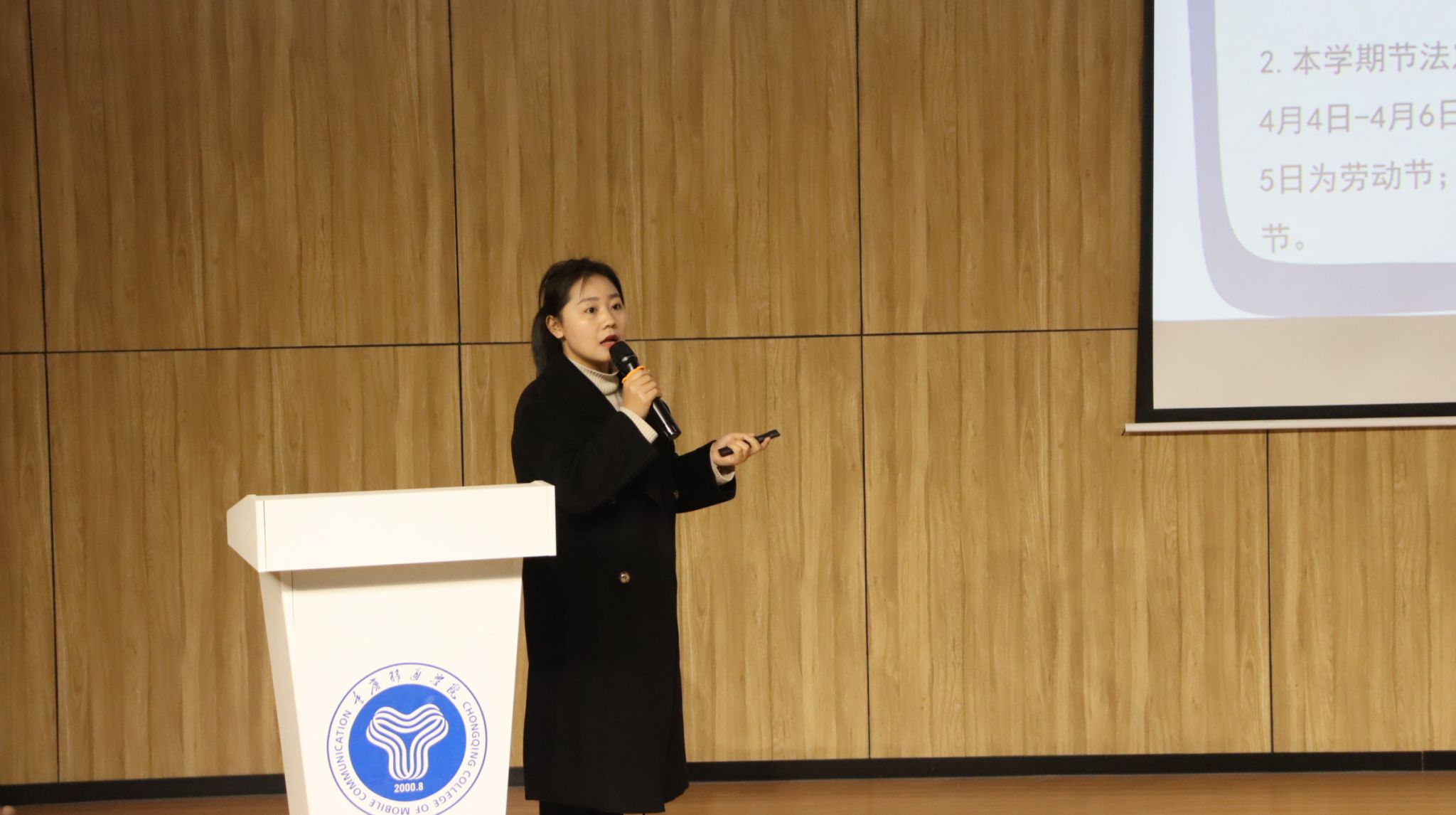 2月22日,通信与信息工程学院召开了本学期安稳工作部署会议。会上,学工办主任胡戈立强调,本学期是学院在綦江校区的最后一个学期,全体师生务必要提高安全意识,推动学院各项工作在安全稳定的环境中顺利开展,力争实现0诈骗、0事故,为学院在綦江校区的圆满收官奠定基础。