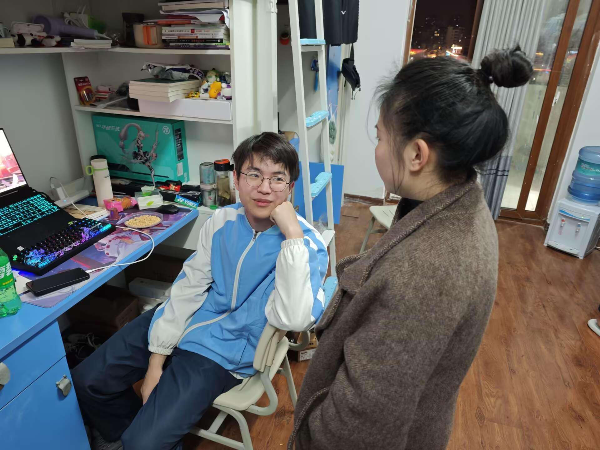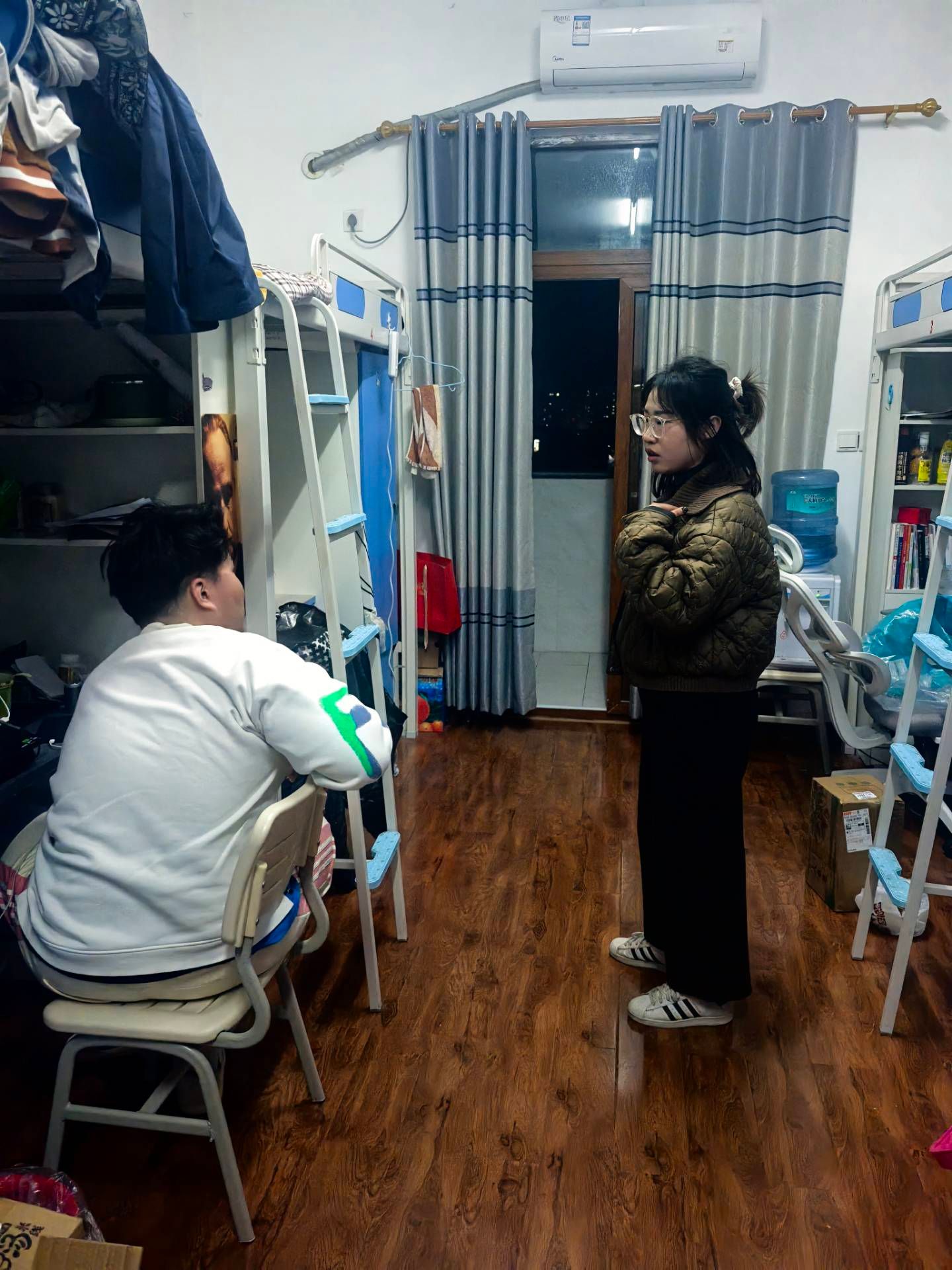 当夜幕降临,结束了一天军训的同学们回到寝室休息。此时,辅导员们又马不停蹄地深入学生寝室,关心同学们的生活情况。每走进一间寝室,辅导员们都会与同学们亲切交谈,询问他们在军训中的收获和感受,以及在生活中是否遇到困难。