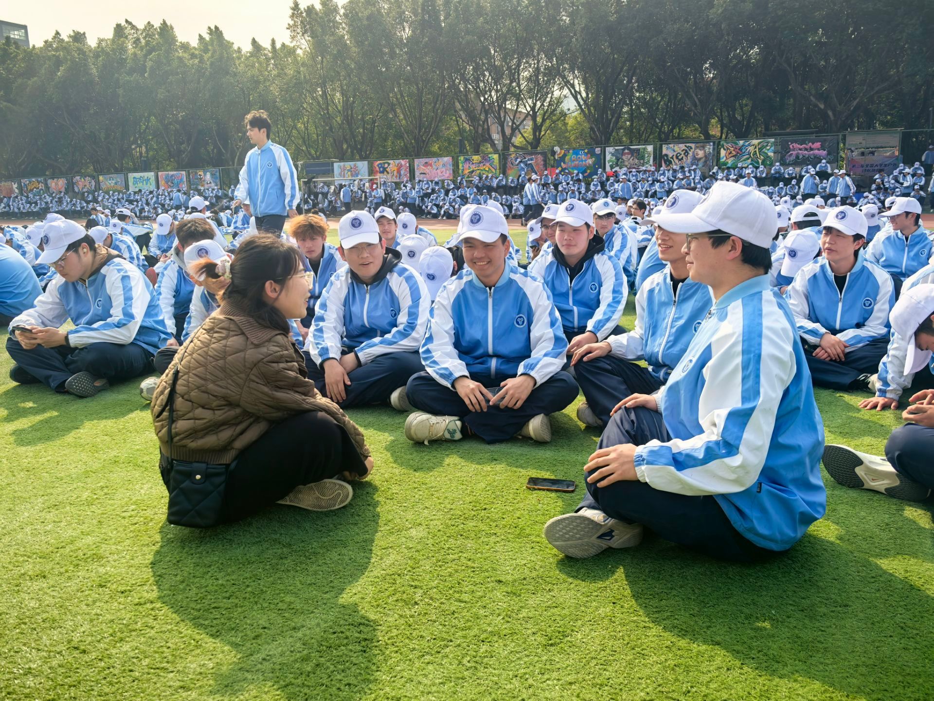 “同学们,累了就休息一下,调整好状态再继续,你们都是好样的!” 辅导员们温暖的话语如同清凉的微风,吹进了同学们的心里,让大家感受到了无尽的关怀与支持。在辅导员们的陪伴和鼓励下,同学们在训练中不断挑战自我,逐渐培养出坚韧不拔的意志和团结协作的精神。