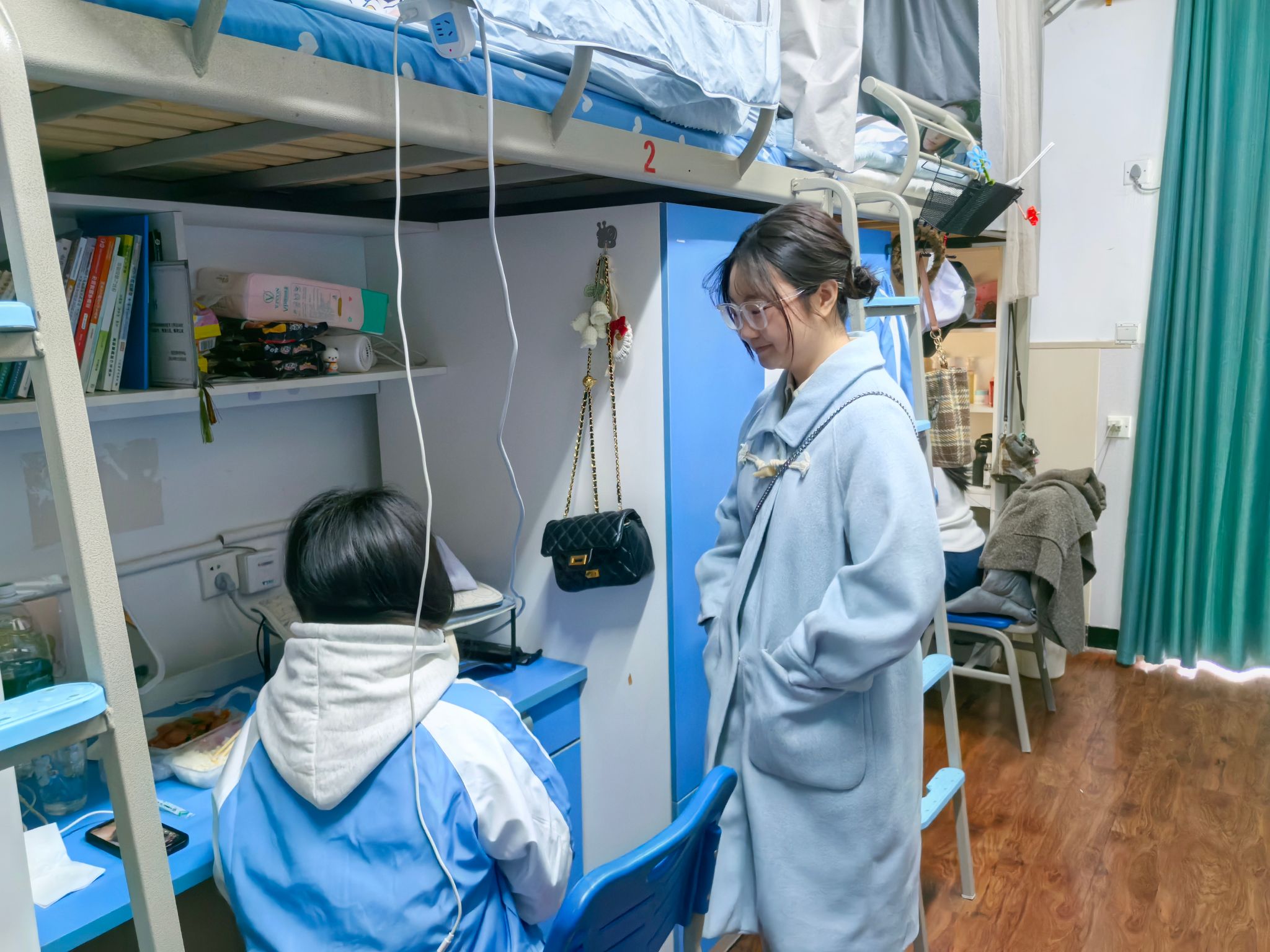“今天训练累不累?晚上睡眠怎么样?有什么问题一定要及时跟我说。” 辅导员们的声声问候,让同学们倍感温暖。对于同学们提出的问题,辅导员们耐心解答,积极协调解决。同时,他们还仔细检查了寝室的卫生和安全情况,提醒同学们要保持良好的生活习惯,注意用电安全。