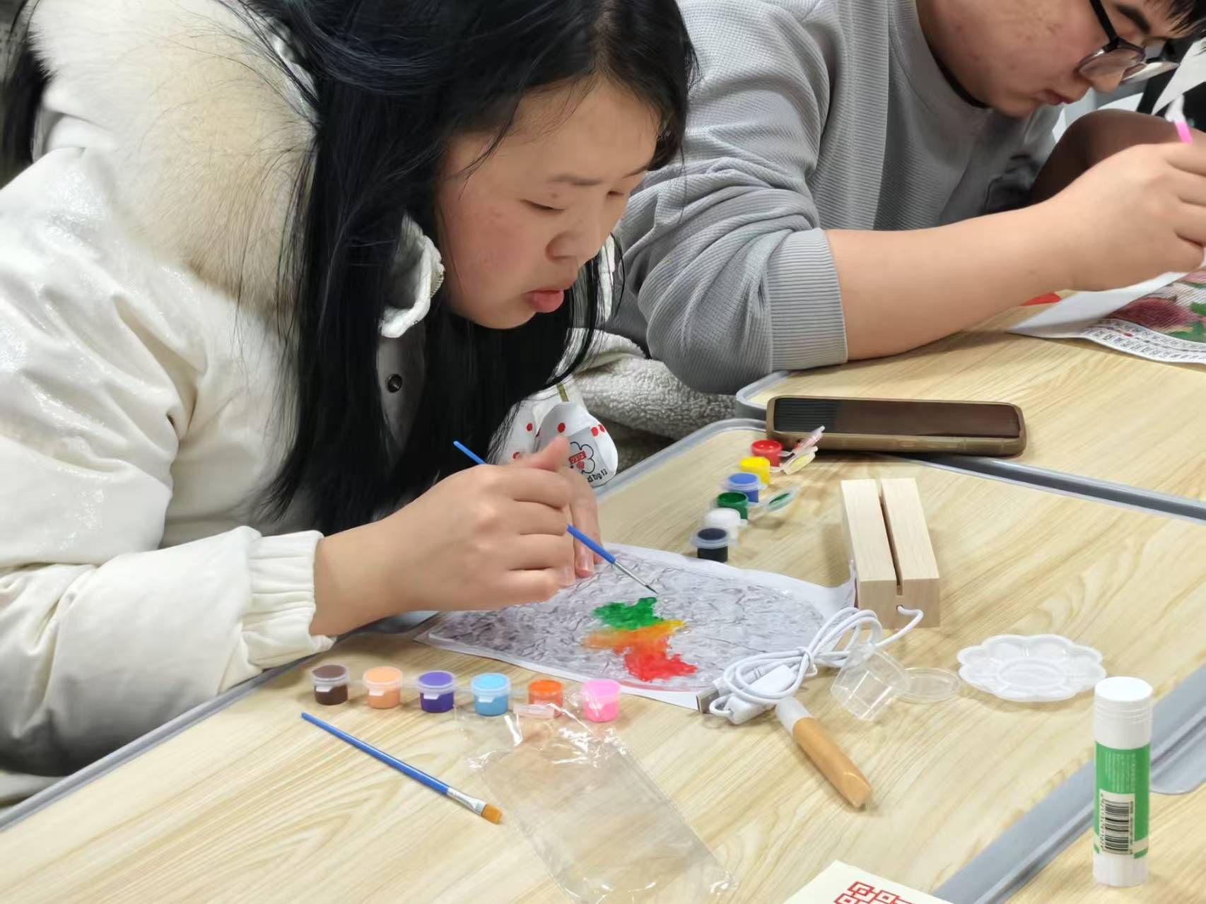 在“星火小夜灯”创作项目,学员们以光电科技赋能传统工艺,将红色和手工相结合,勾勒出祖国山河、红船、和平等等图案。点点星光既象征着革命火种代相传,更昭示着青年一代“强国有我”的赤子情怀。