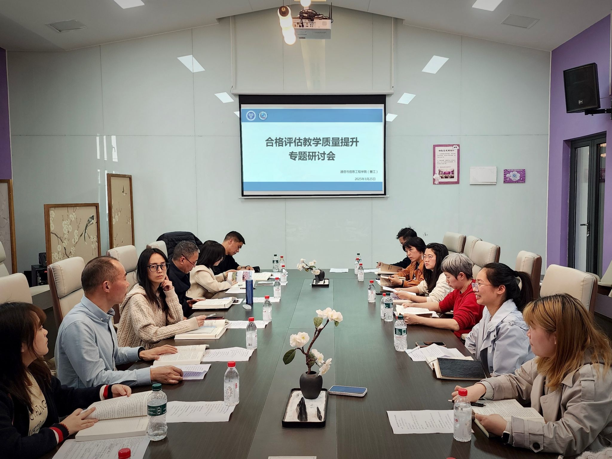 为深入推进本科教学合格评估工作,全方位提升评建工作质量,扎实筑牢教学根基,3月25日下午15:00,通信与信息工程学院(綦江校区)在观云书院小雪会议室召开合格评估教学质量提升专题研讨会。会议由通信与信息工程学院副院长王国树主持,院长李文娟、教学副院长唐林建、学科基础教研室主任张媛以及綦江校区学院全体教师参会。