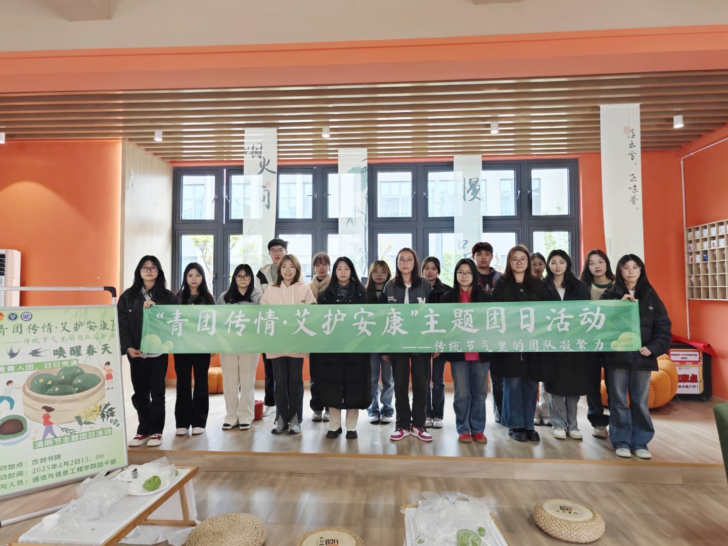 清明时节,春和景明。为弘扬传统文化、增强团队凝聚力,通信与信息工程学院于2025年4月2日15:50在古剑书院白虹•半间闲室,开展了以“青团传情·义护安康”为主题的清明节团日活动。活动以节气为纽带,通过制作青团、手作艾草锤等环节,将节气文化、养生实践有机串联,在指尖技艺中传承文化,于协作互动中凝聚青春力量,为春日增添了一抹温暖的人文色彩。