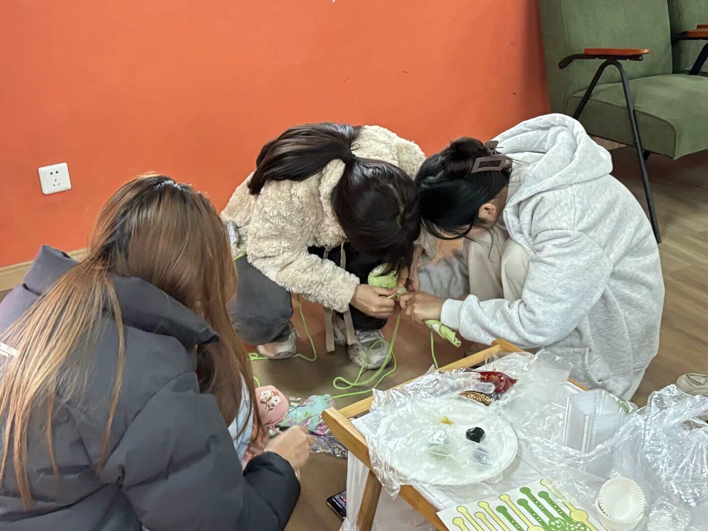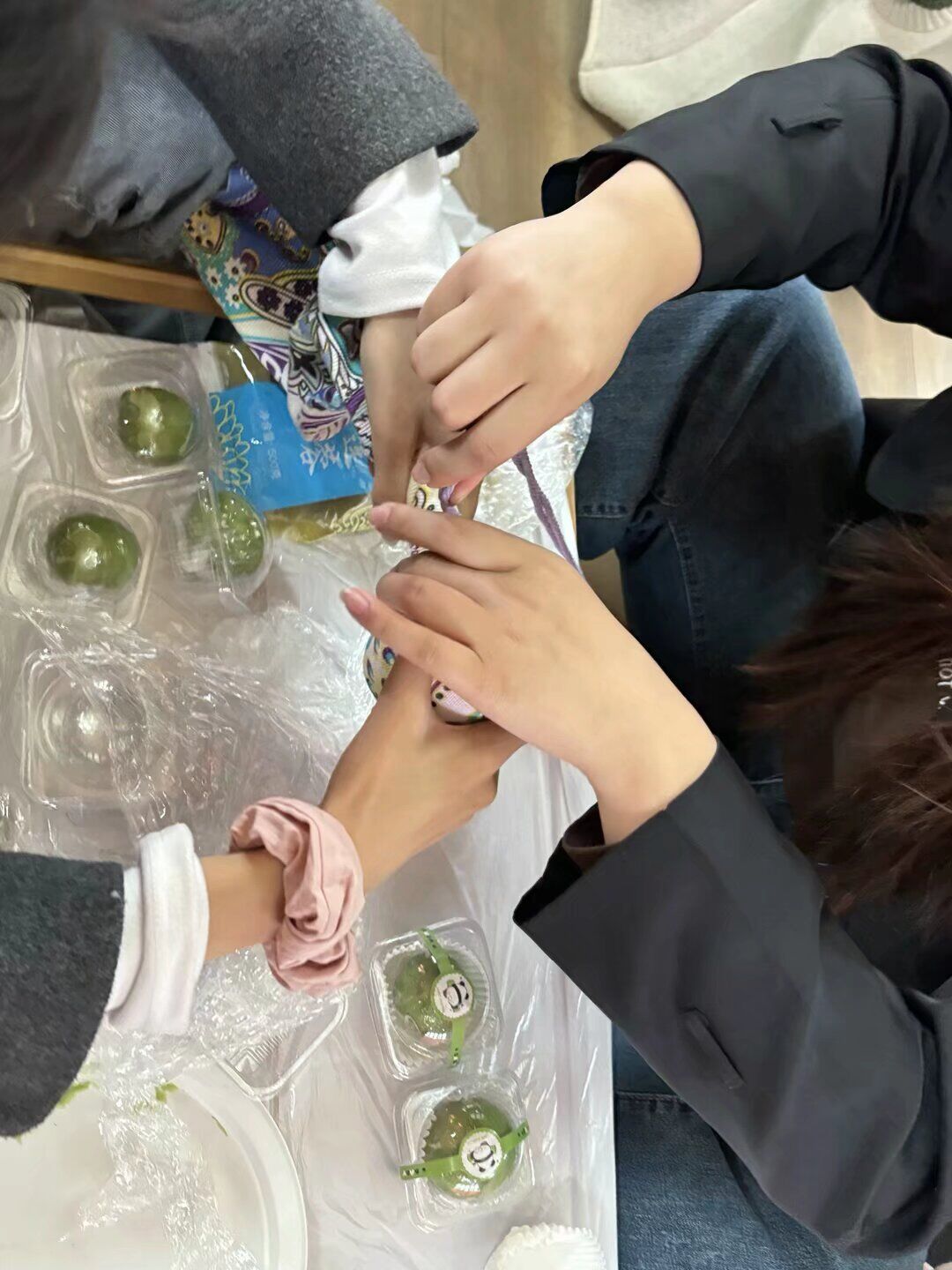 如果说青团承载着舌尖上的文化记忆,艾草锤则凝聚着古人的养生智慧。活动第二环节,成员们移步学习制作非遗艾草锤。填充艾绒、裹紧棉布、缠绕彩线……团干部们将晒干的艾草叶层层压实,制成小巧精致的养生锤。“艾草锤不仅是传统中医‘锤络疗法’的工具,更有驱寒除湿、舒缓疲劳之效。”主持人还结合《黄帝内经》中的养生理念,讲解了艾草锤的使用方法。