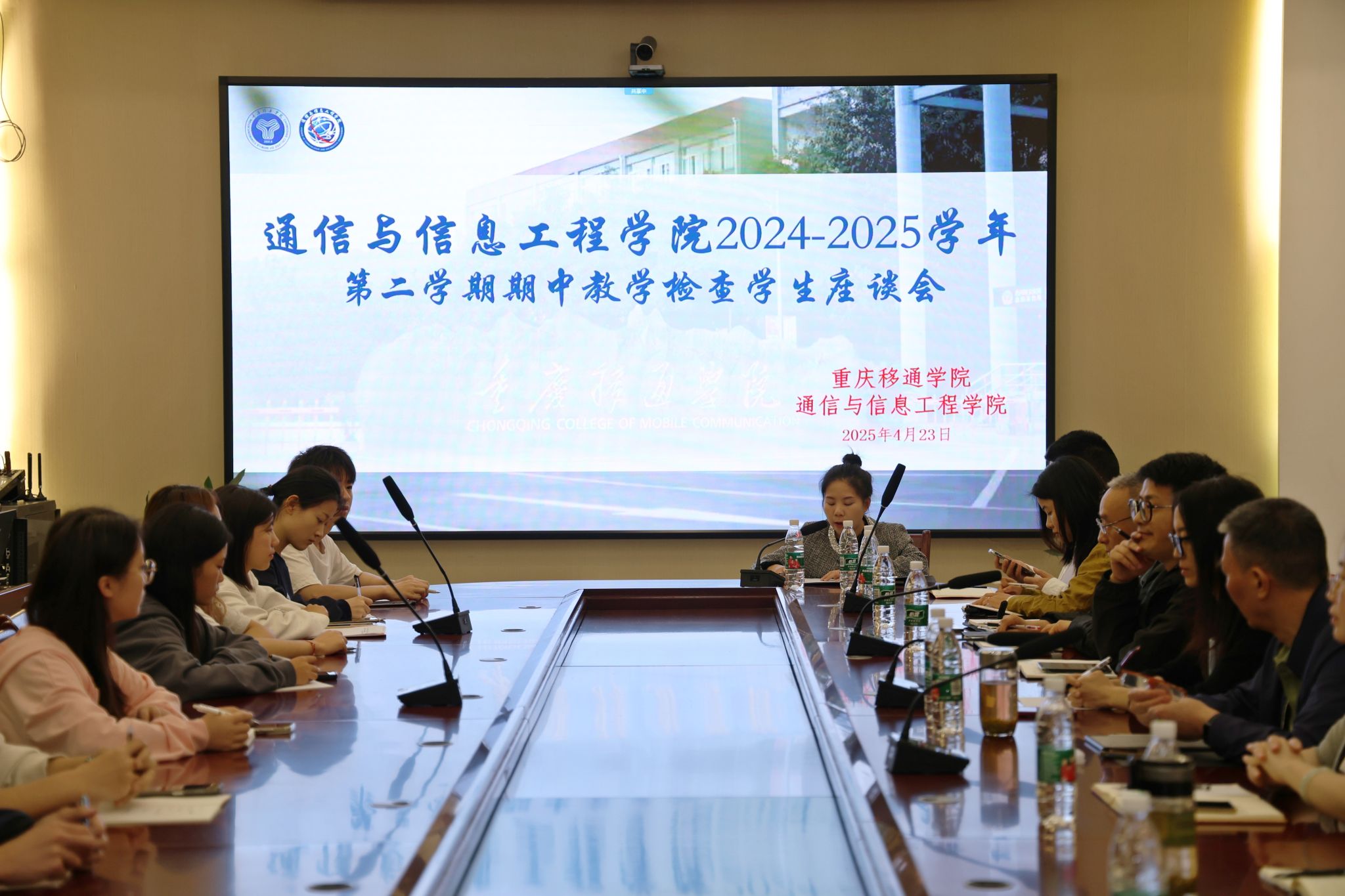 为深化教学改革、强化管理效能,全面提升人才培养质量,营造严谨治学、积极向上的教学氛围,2025年4月23日,通信与信息工程学院在行政楼107会议室召开2024-2025学年第二学期期中教学检查学生座谈会。本次会议聚焦学院学风建设与"四位一体双院制"育人模式,通过师生面对面交流,广泛征集学生意见建议,为优化教学管理、营造优良学风、推动教育高质量发展精准锚定方向。