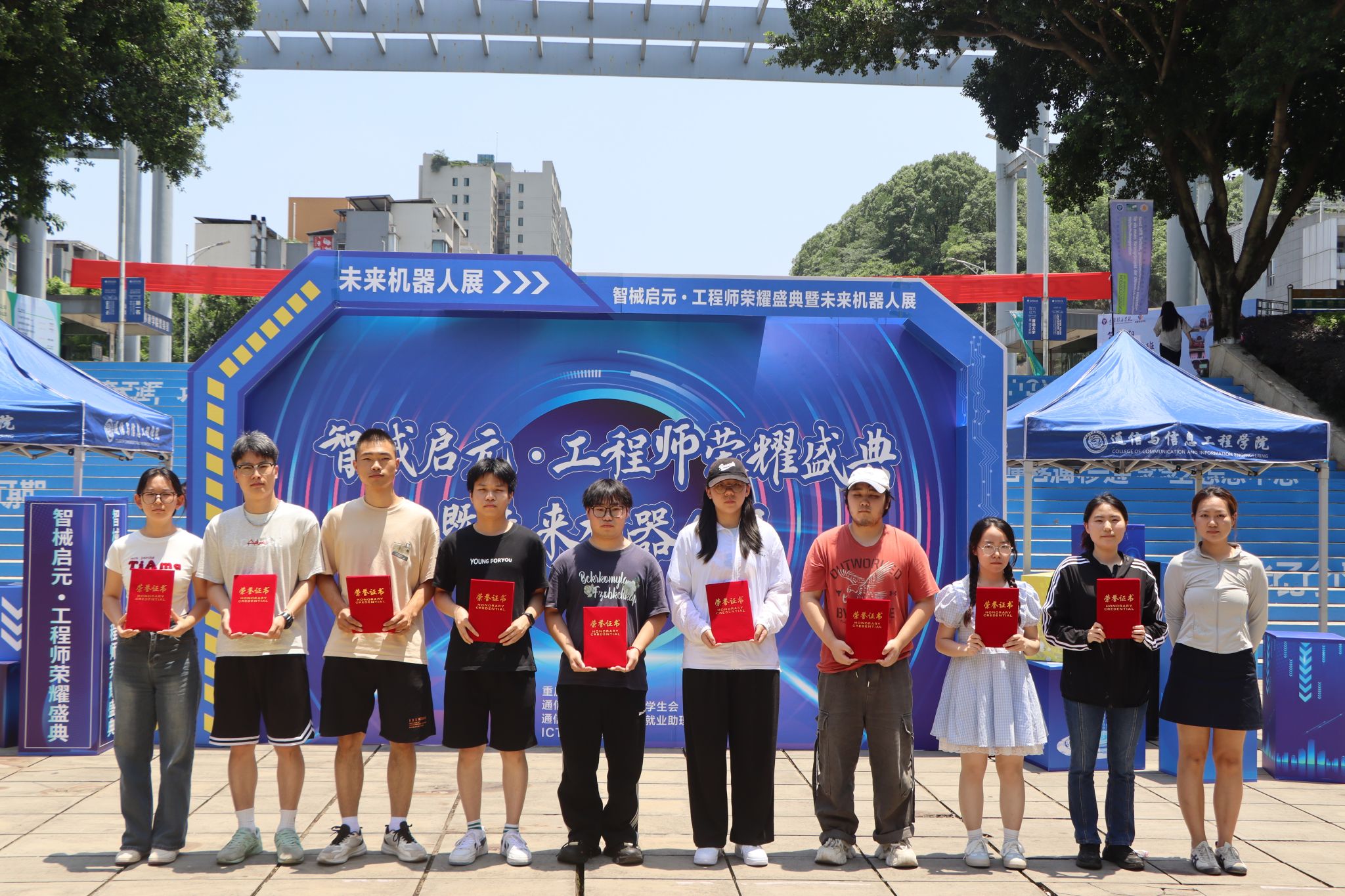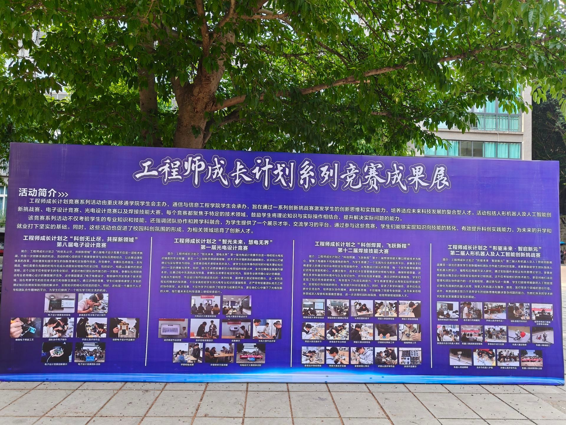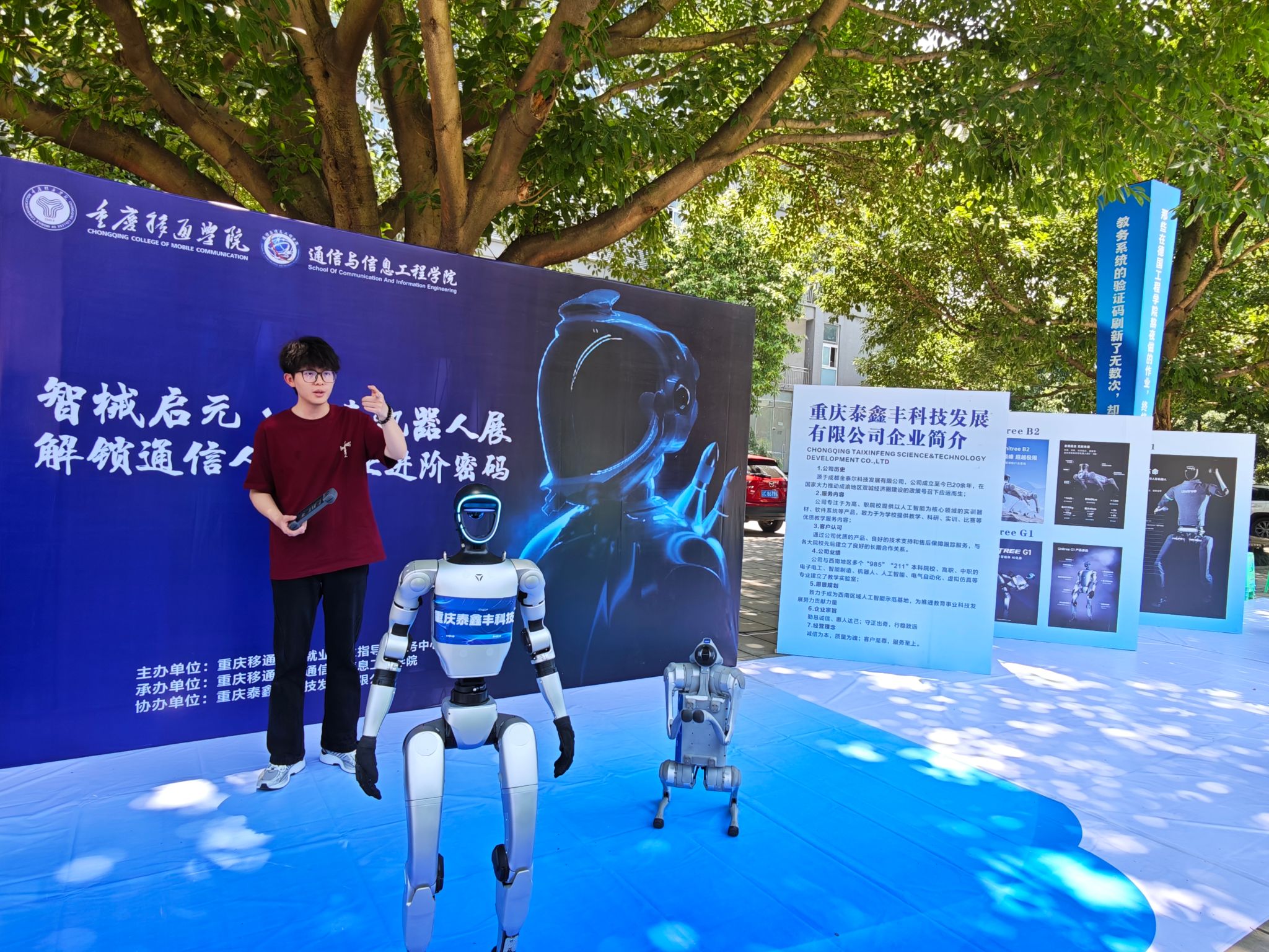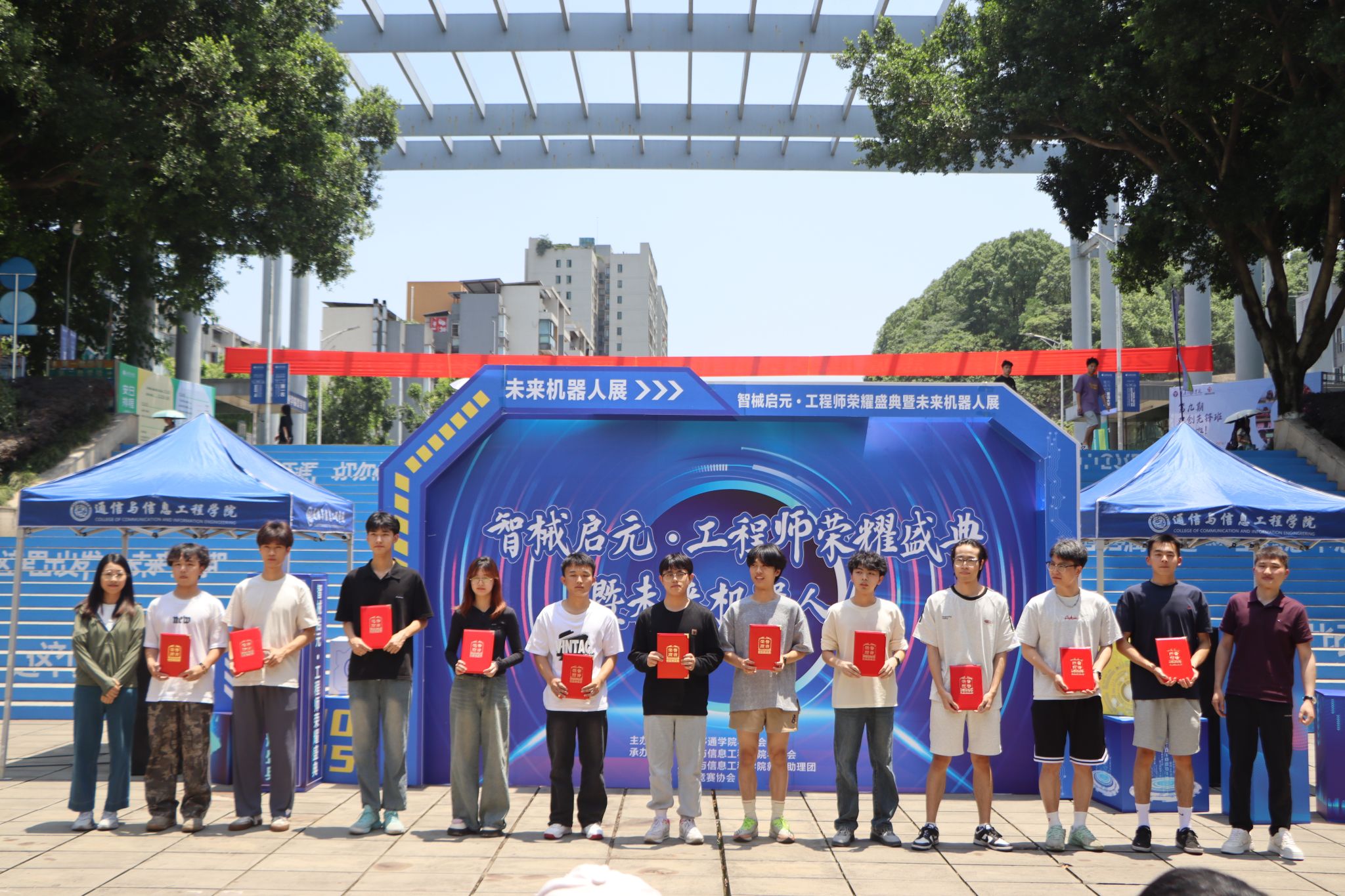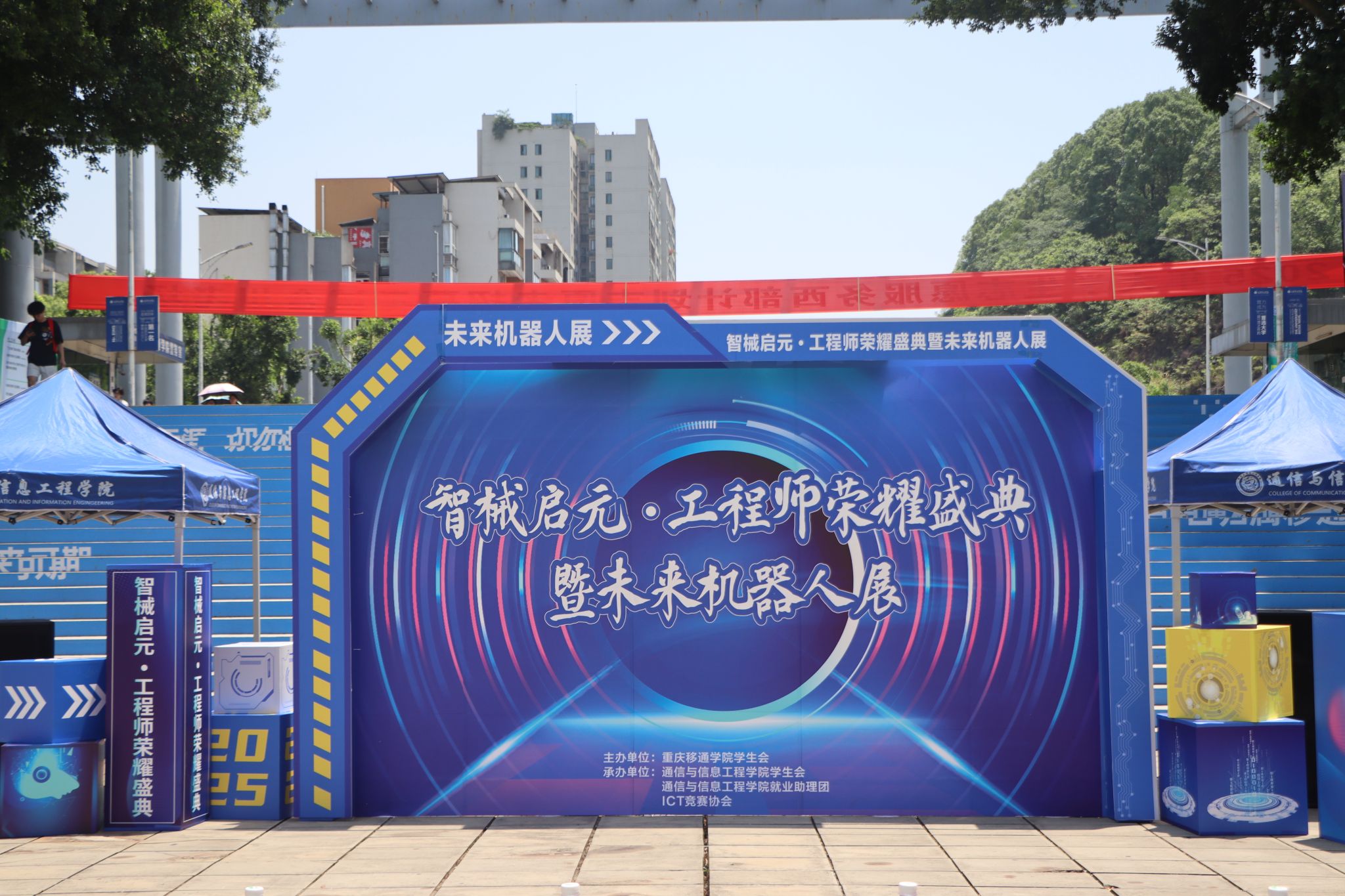 为表彰“工程师成长计划”中获奖学子,全方位赋能学生职业发展,2025 年5月20日,由重庆移通学院校学生会主办,通信与信息工程学院学生会、就业助理团及 ICT 竞赛协会联合承办,邀请重庆泰鑫丰科技发展有限公司,共同打造的“智械启元·工程师荣耀盛典暨未来机器人展”在黄桷树广场圆满举办。活动通过表彰从工程师成长计划系列竞赛中脱颖而出的优秀学子,展示前沿科技成果,为师生打造了一场沉浸式的科技盛宴,为专业人才培养注入创新动能。