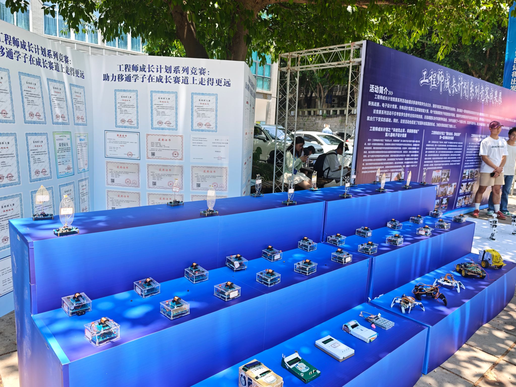 工程师成长计划是社团加专业的充分实践,是致力于培养具有家国情怀、国际视野和扎实专业能力的工程技术人才的重要平台。科技展聚焦工程师成长计划的核心育人目标,系统展示了多维度赛事成果。参赛选手们自主设计的智能小车、电磁炮、电磁秋千等作品集群让教学成果可视化展现,选手设计的机器人群舞让同学们驻足观看,充分体现了参赛者对电路设计、系统集成及算法优化、工艺创新、传感器融合、自主导航算法等综合实践能力的掌握和实践应用能力。现场同步展示通过校赛选拔推送至市赛、国赛的获奖证书及晋级成果,形成“校级孵化 —区域晋级—国家级竞技”的完整培养链路。让“理论知识—实践技能—创新思维”三位一体的培养成效激发学生对前沿技术的探索热情,助力形成 “以赛促学、以赛促创” 的良性学习生态。