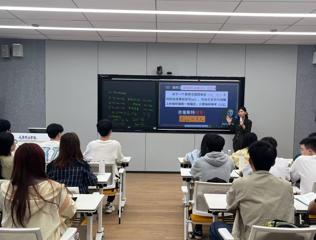 4 月 7 日,赵瑞玉老师在天空 305 教室进行 “抽样定理” 磨课展示。此次展示以 “问题链” 贯穿教学全程,从案例导入引发学生的认知冲突,利用前测数据精准诊断学习起点,再通过分层讲解突破教学重难点,最后借助 “生讲师评” 的抢分小测验检验教学目标的达成度。课堂上,学生们借助即时互动工具积极参与答题,在案例解密环节切实感受到理论知识的应用价值,形成了 “学-思-用” 的良好闭环体验,极大地提升了课堂参与度和知识吸收率。