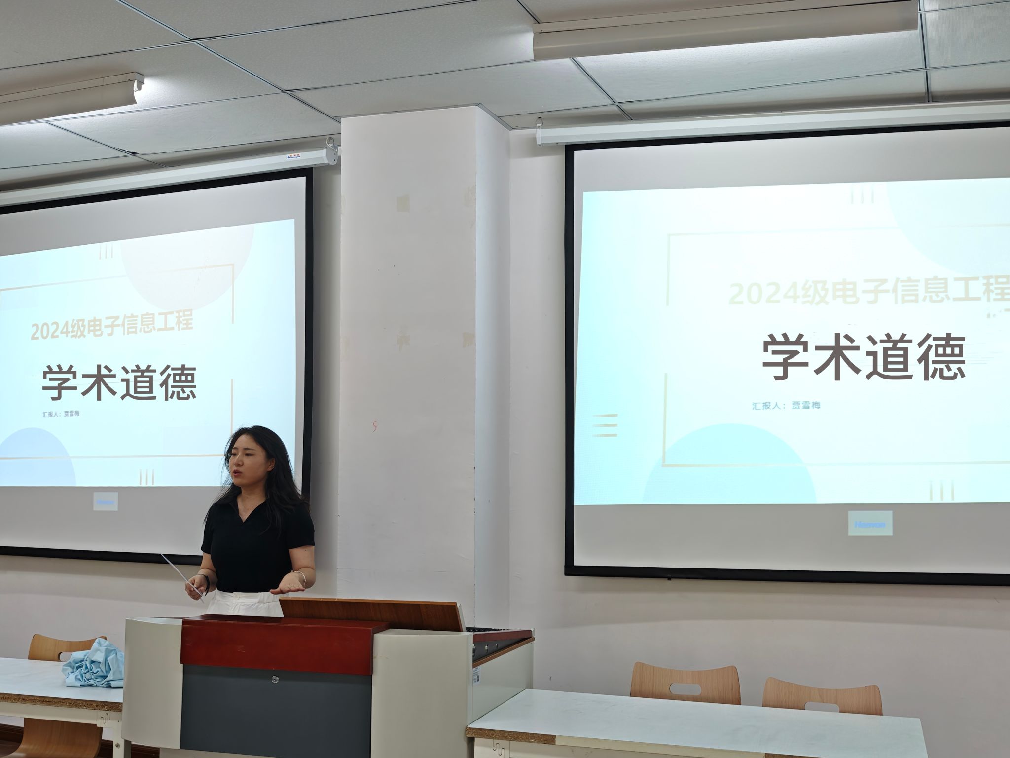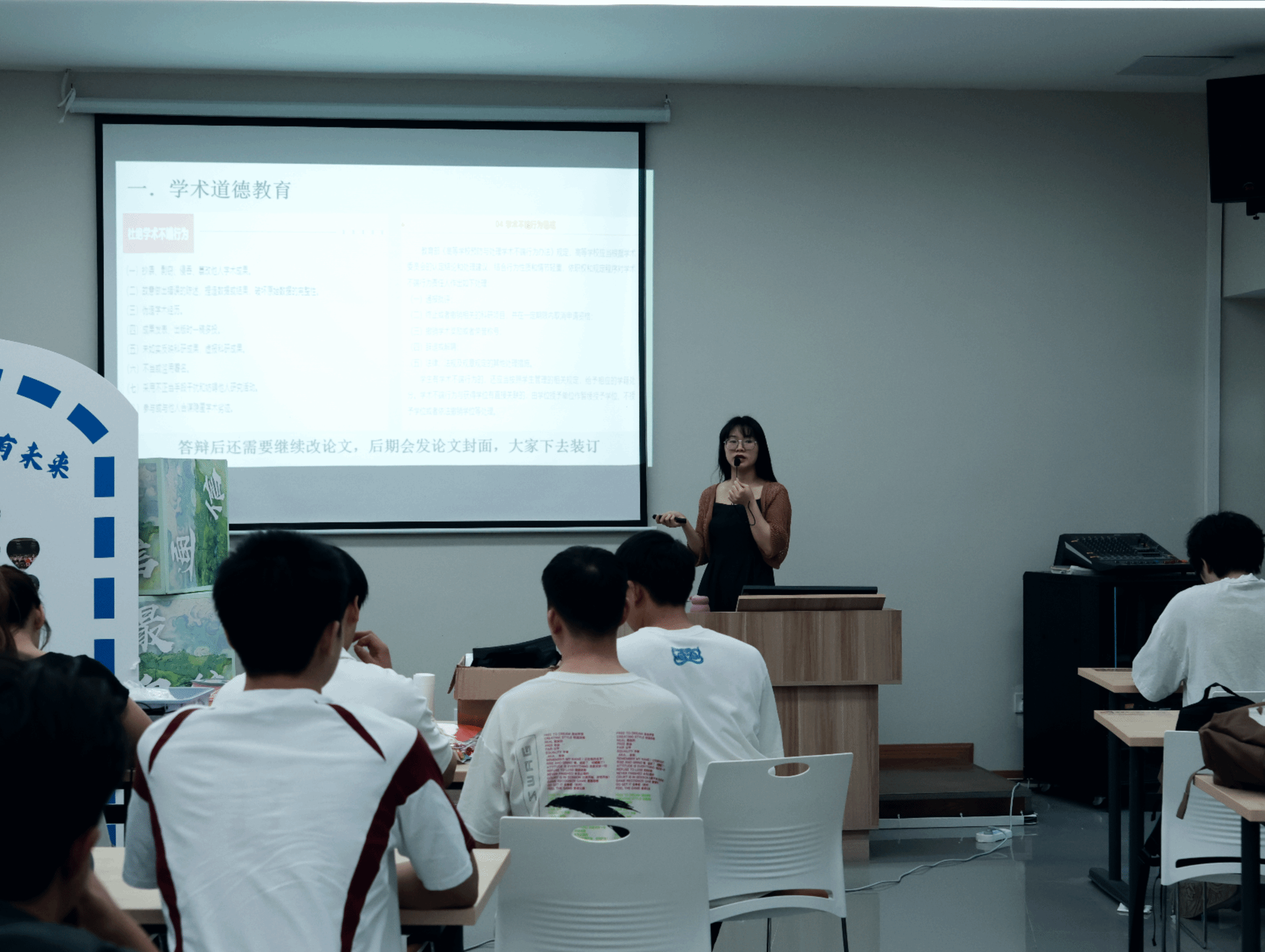 在班级层面,各班积极响应学院号召,组织开展了形式多样的学术道德主题班会。有的班级以小组讨论的形式,让同学们围绕学术道德话题展开深入交流,分享自己身边的学术故事,互相监督、共同进步。在主题班会中,同学们还共同签署了学术道德承诺书,以实际行动表明自己坚守学术道德的决心。