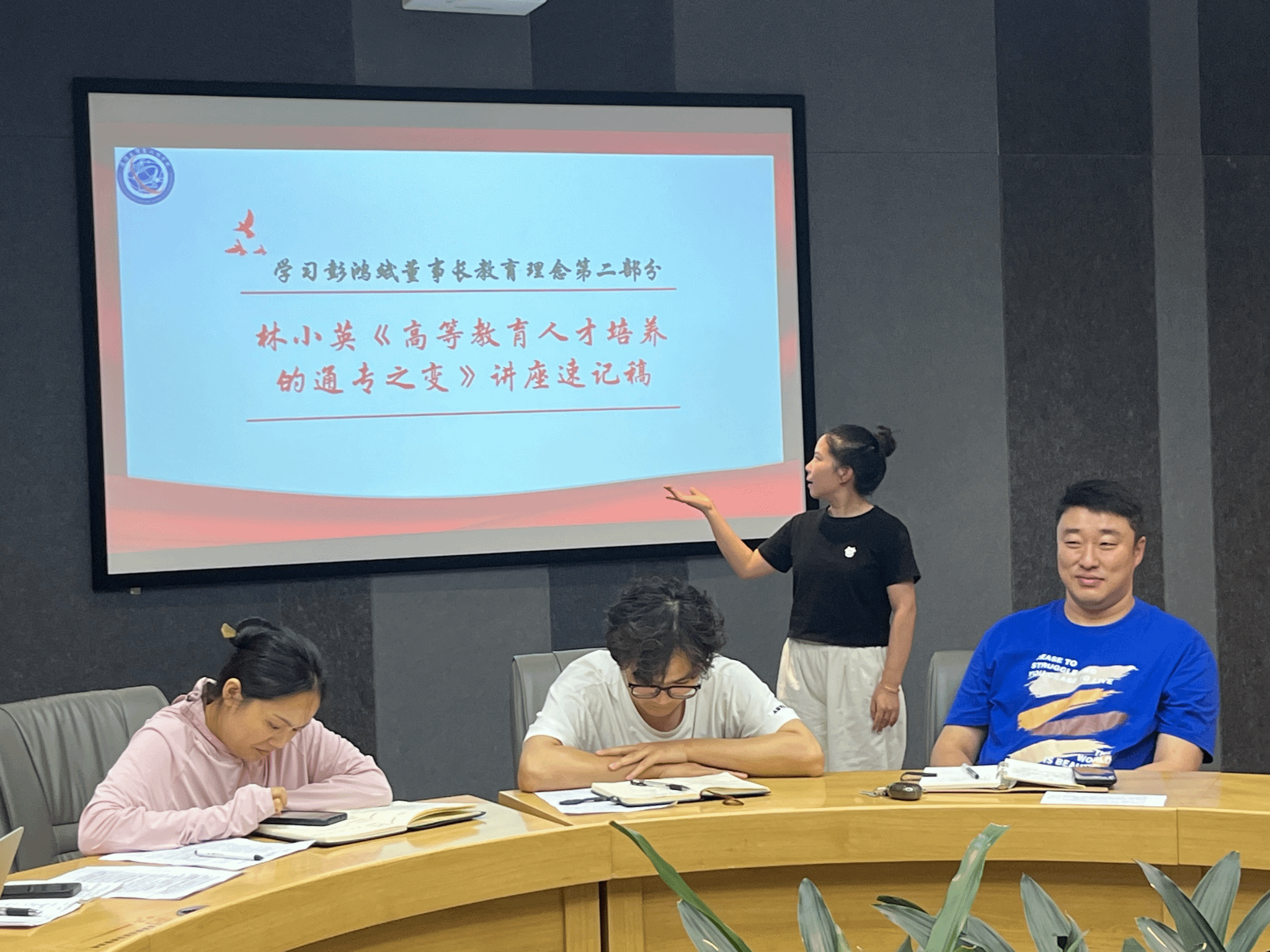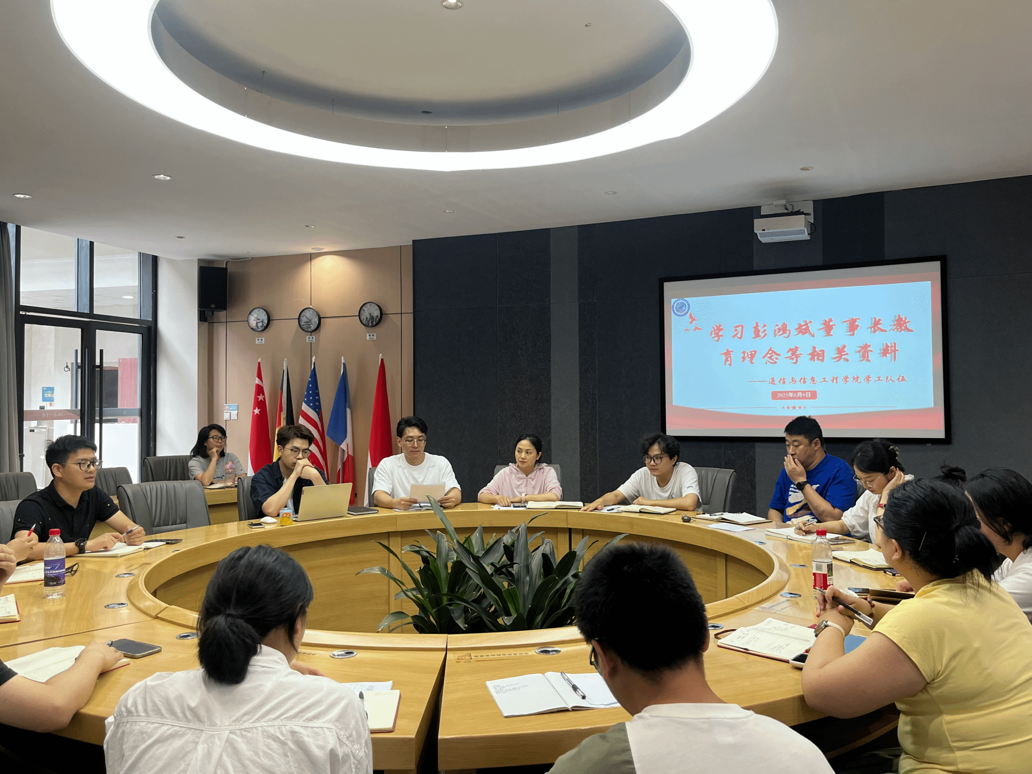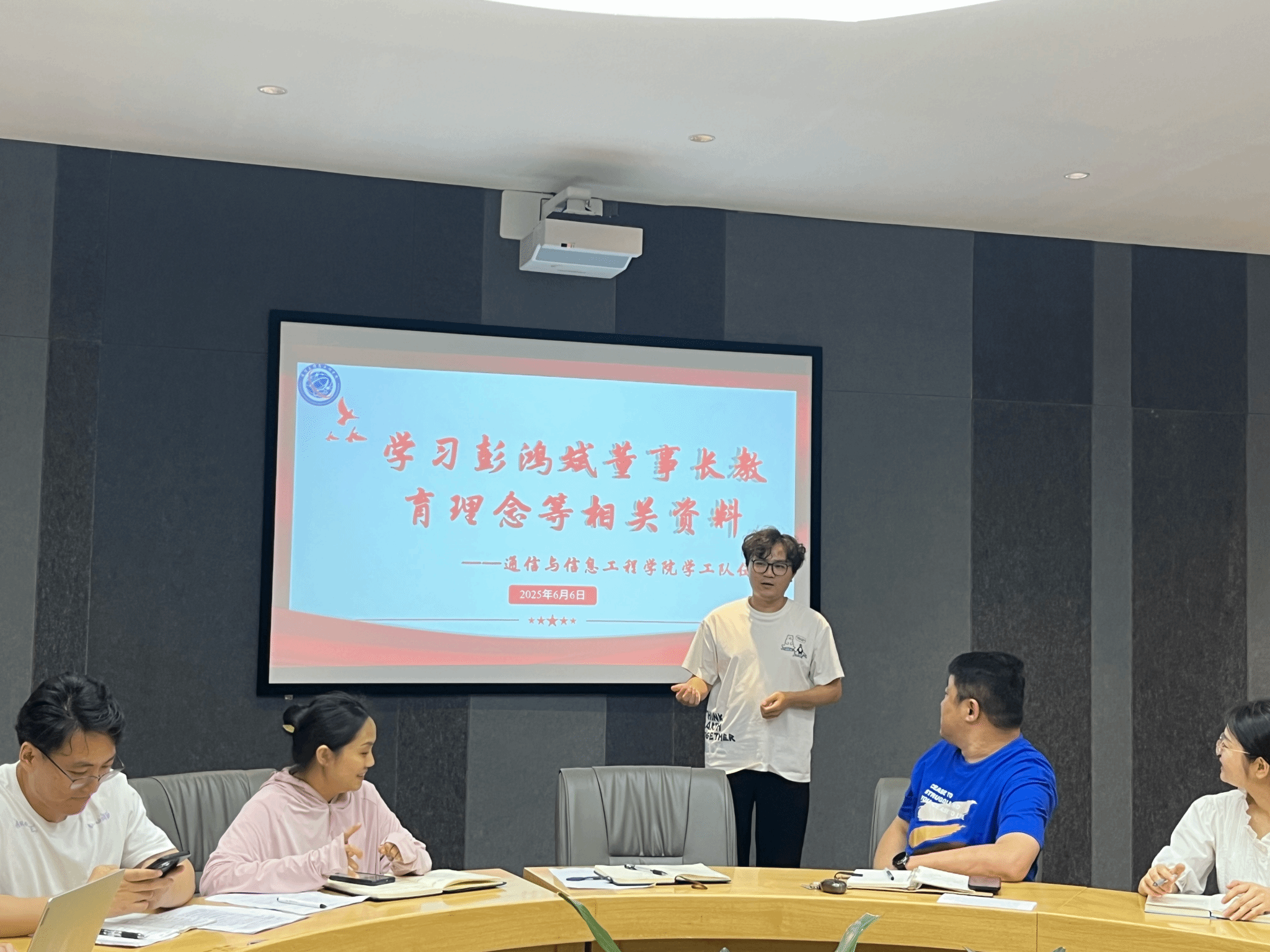 2025年6月5日,通信与信息工程学院学工队伍在南湖书院圆桌会议室集中学习彭鸿斌董事长教育理念相关资料,包括《害怕没人等待而不敢系鞋带》、林小英《高等教育人才培养的通专之变》讲座速记稿、林小英《高中—大学,教育的本真》围炉夜话速记稿相关内容。会议由吕海军老师主持,通信与信息工程学院全体辅导员参与学习。