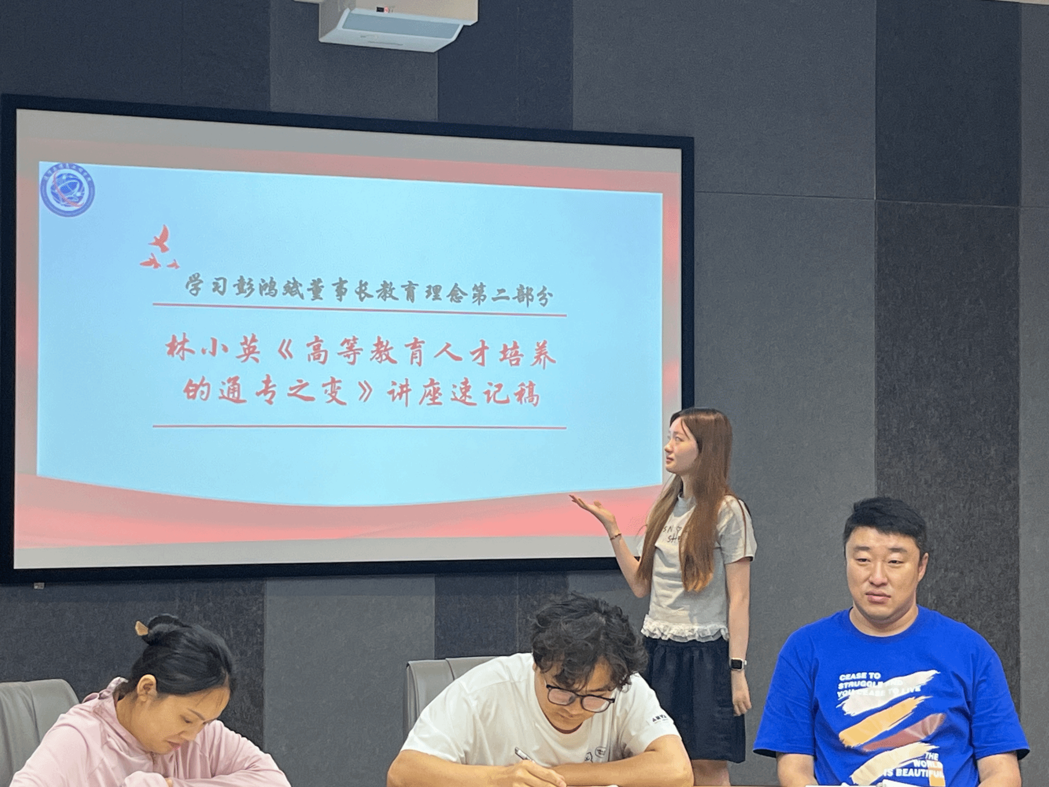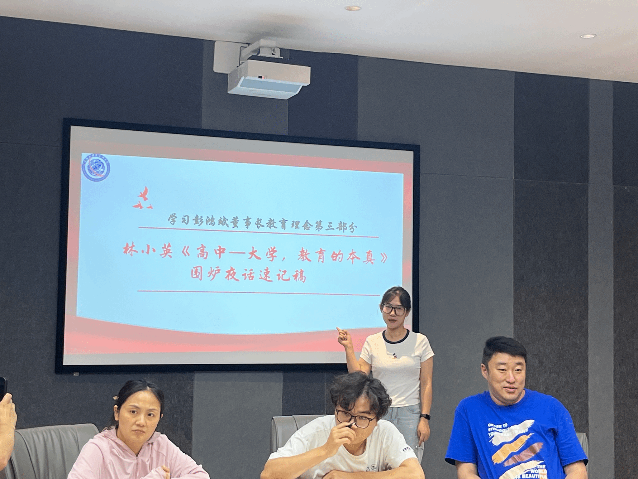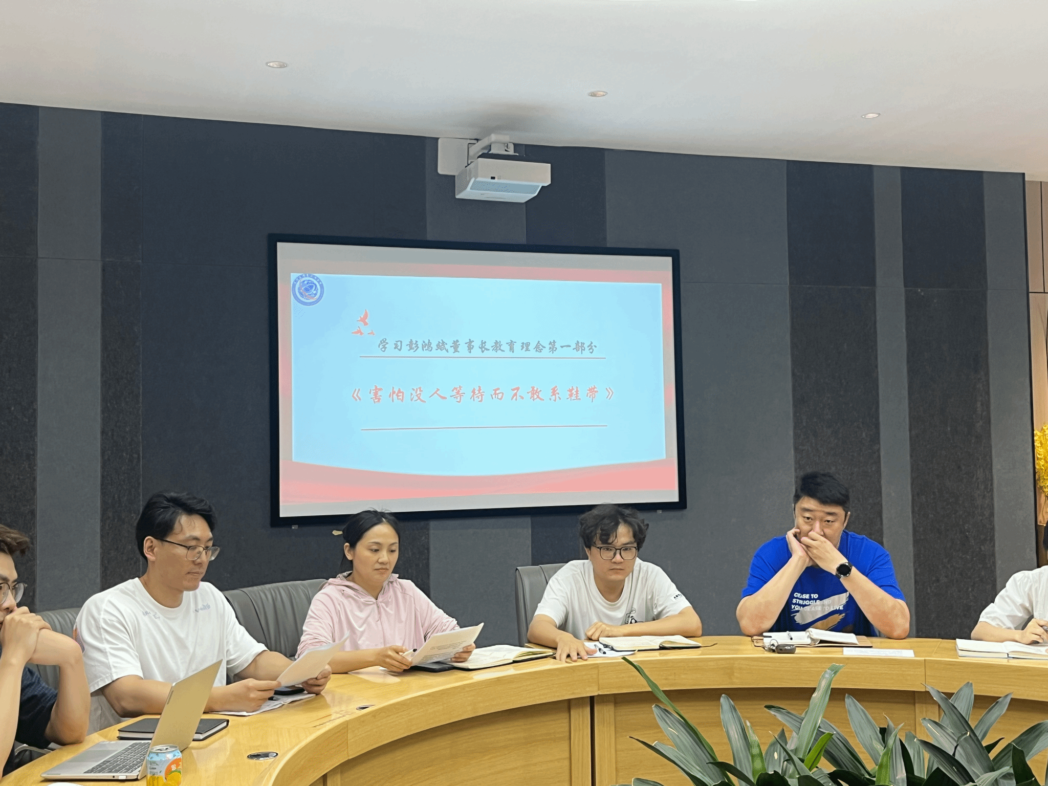 2025年6月5日,通信与信息工程学院学工队伍在南湖书院圆桌会议室集中学习彭鸿斌董事长教育理念相关资料,包括《害怕没人等待而不敢系鞋带》、林小英《高等教育人才培养的通专之变》讲座速记稿、林小英《高中—大学,教育的本真》围炉夜话速记稿相关内容。会议由吕海军老师主持,通信与信息工程学院全体辅导员参与学习。