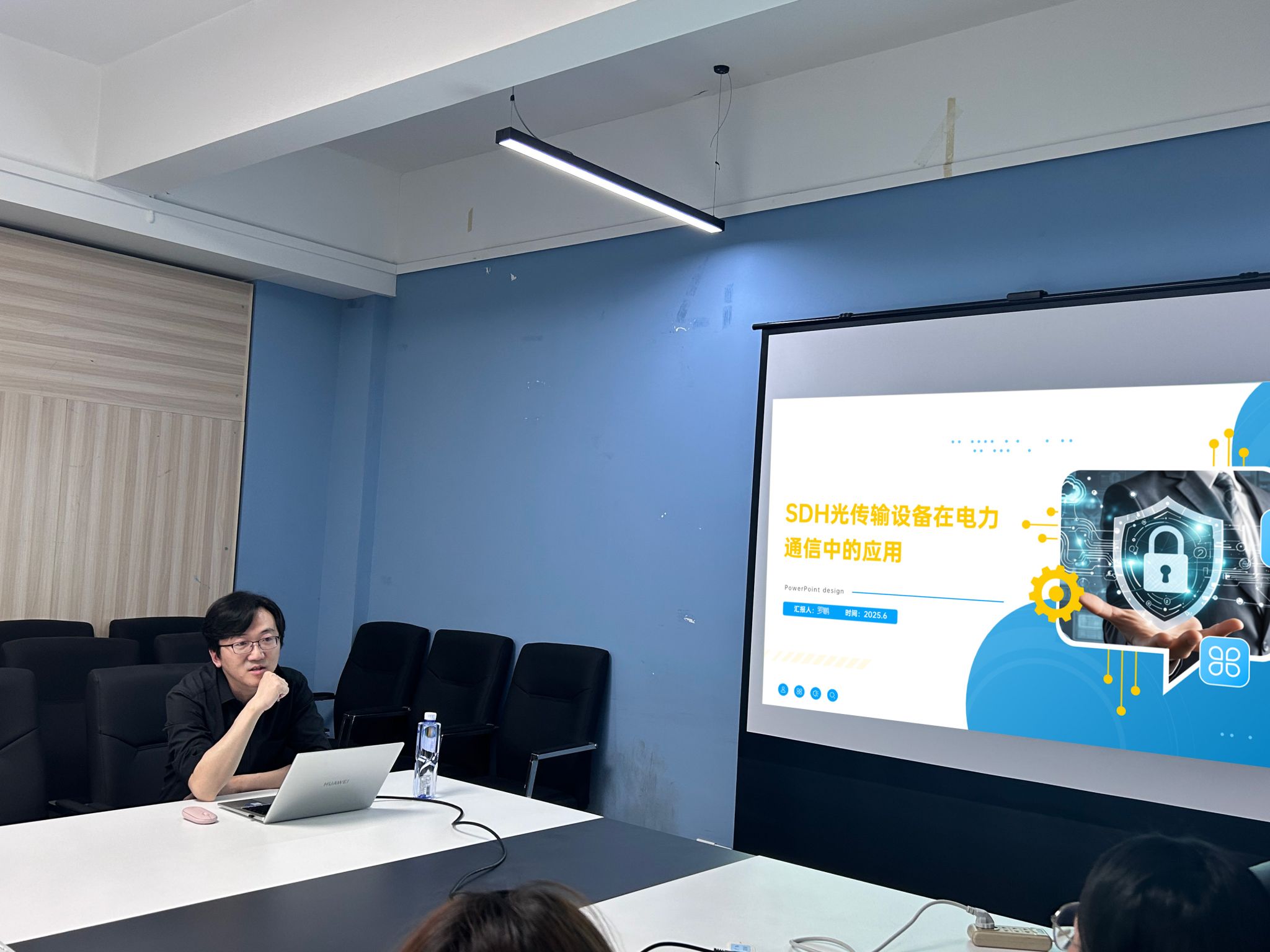 6月4日,电子信息教研室在汇江书院会议室举办了一场主题为“SDH光传输设备在电力通信中的应用”的专题讲座。本次讲座特邀国网合川供电公司调控中心通信及二次安防专责罗鹏作为主讲嘉宾,由电子信息教研室主任费莉主持,教研室全体教师参与。活动旨在促进产学研深度融合,提升教师对前沿通信技术的认知与实践能力。