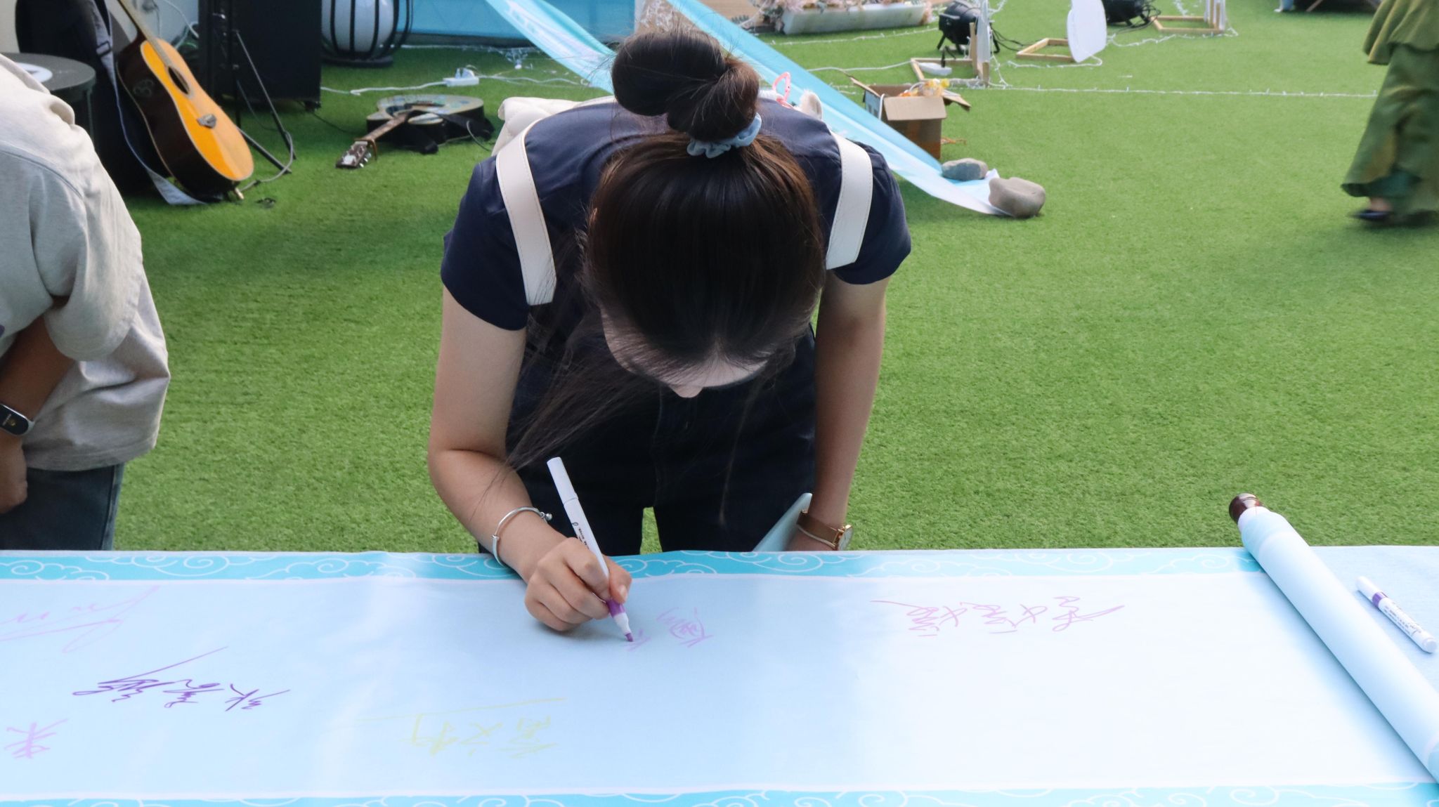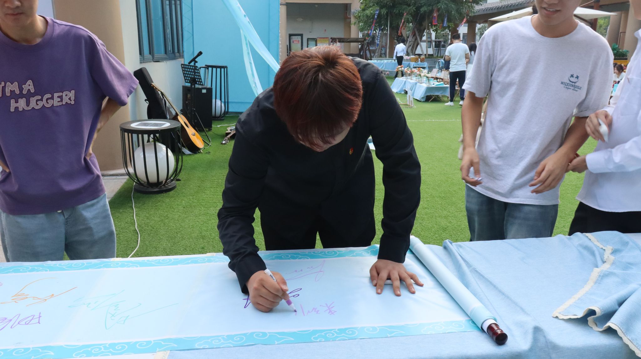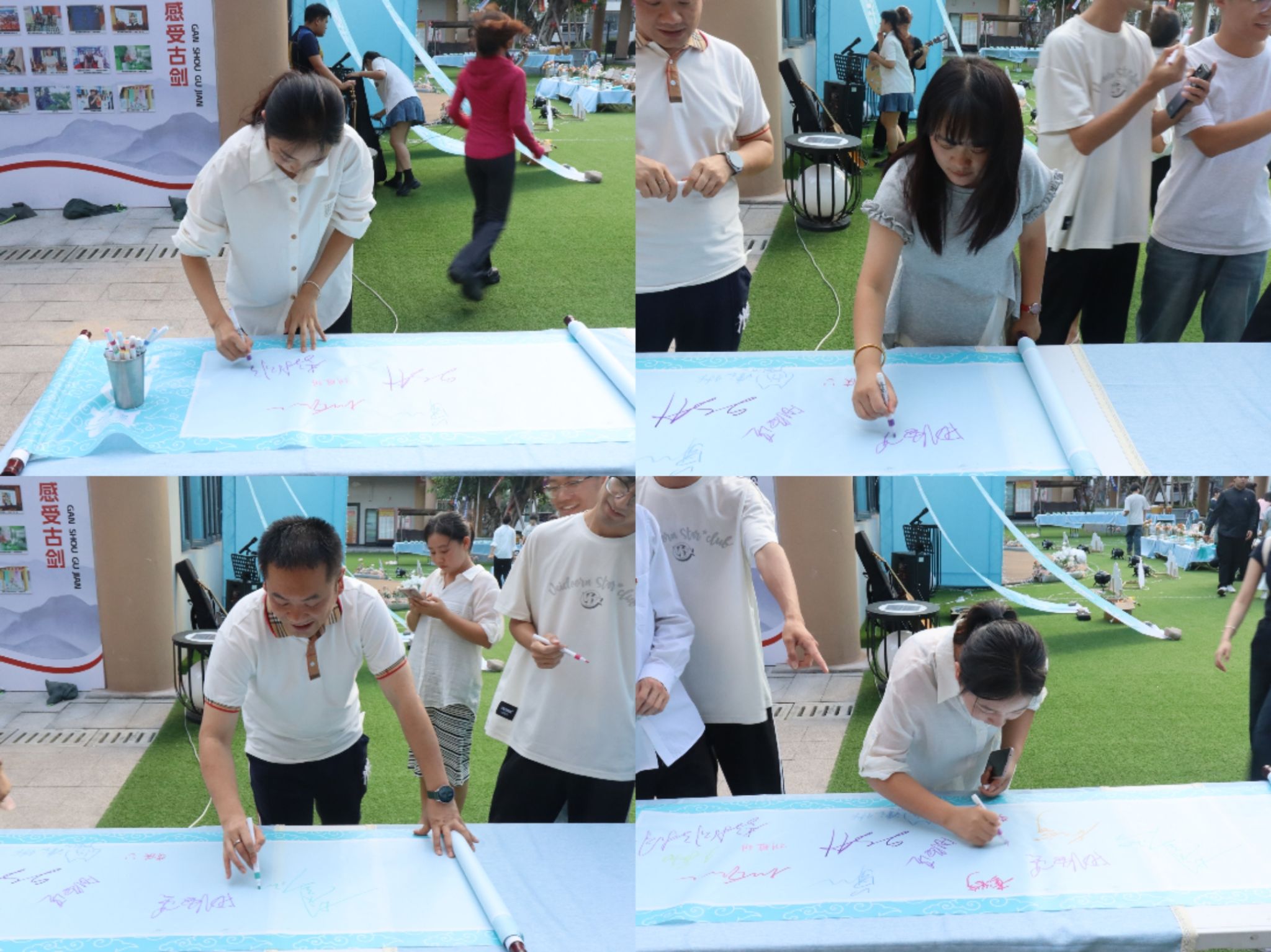 述职结束后,师生们移步古剑书院中庭,在印有“大通信,最自信”的卷轴上,郑重签下自己的名字;一笔一划间,是对过往的深情告别;一字一句里,饱含对未来的美好期许。夕阳余晖中,相机定格下这珍贵瞬间,为綦江校区的最后时光留下永恒纪念。