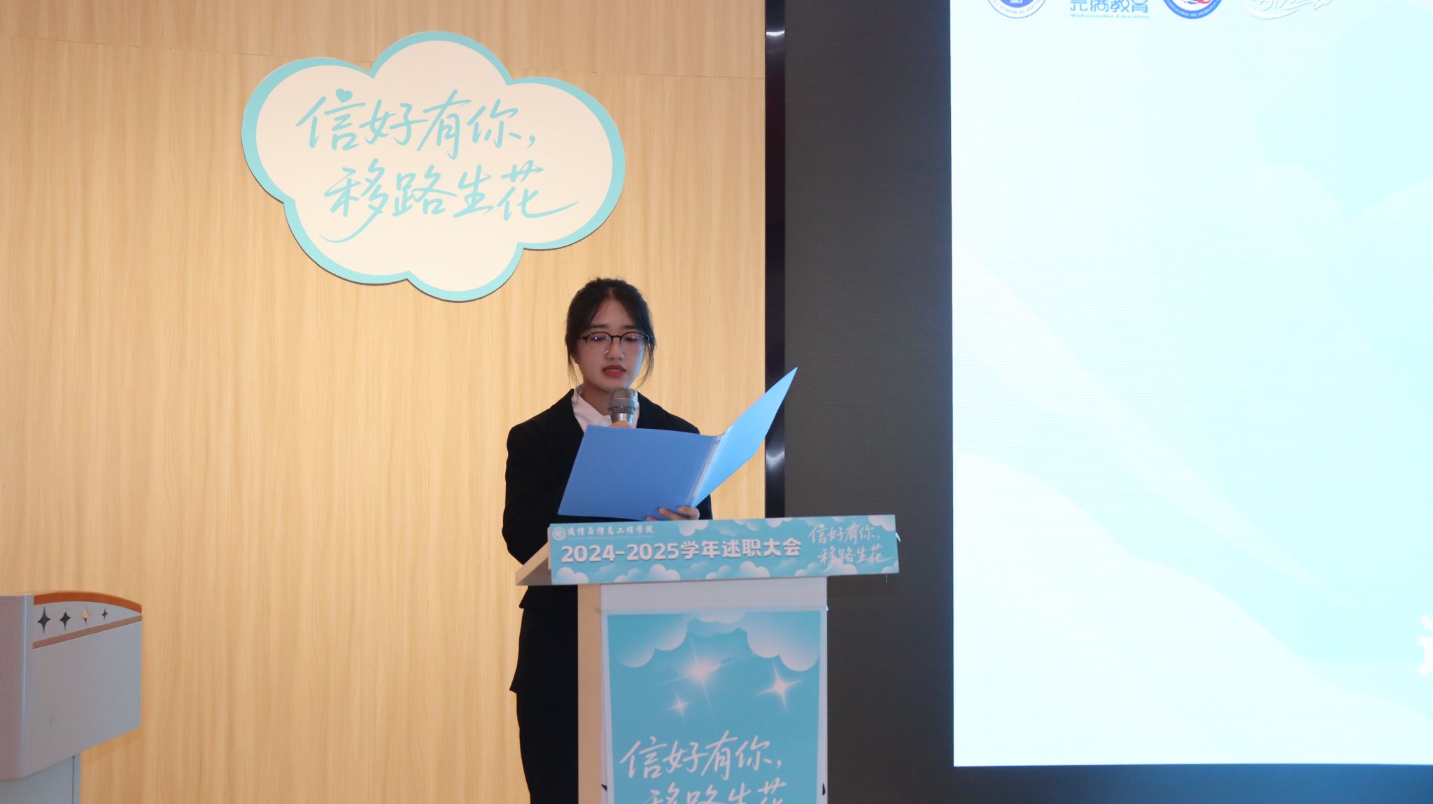 随后,田海燕老师致辞。她对述职中反映的问题给予了专业指导,并回顾了同学们在綦江校区的成长轨迹,从青涩到成熟,从迷茫到坚定。同时田老师寄语道,“愿你们带着这里的收获与感动,在未来的人生道路上绽放更耀眼的光芒。”
