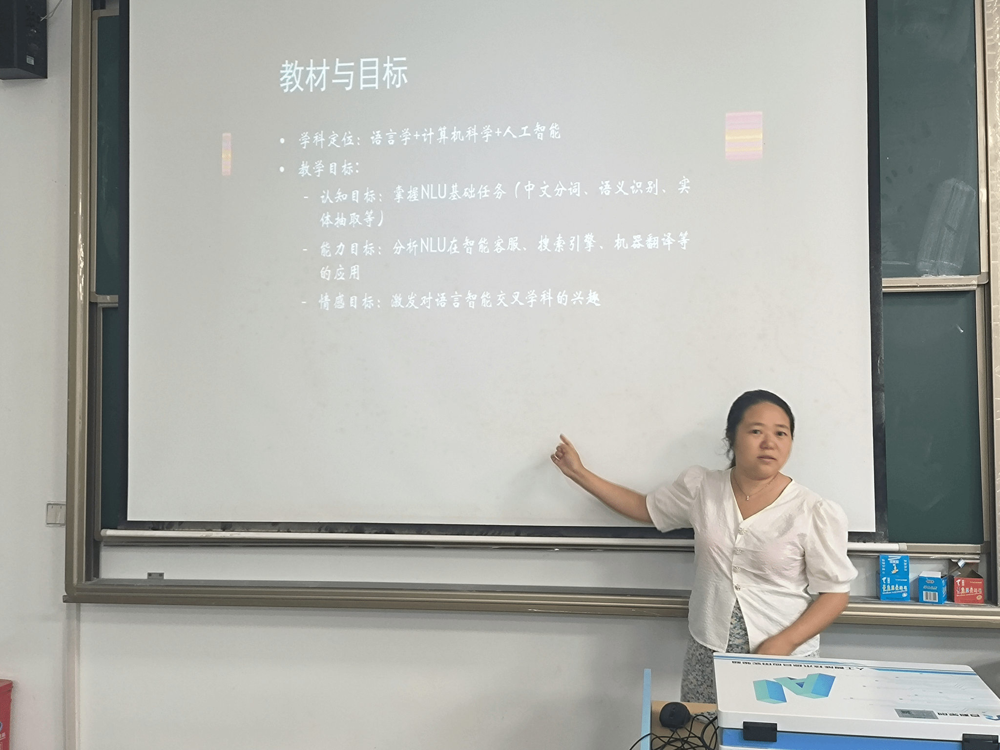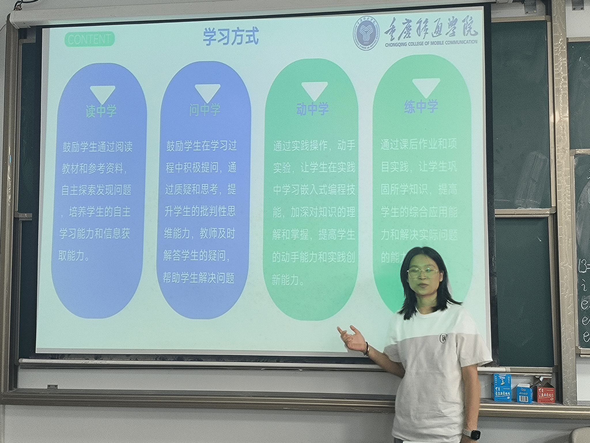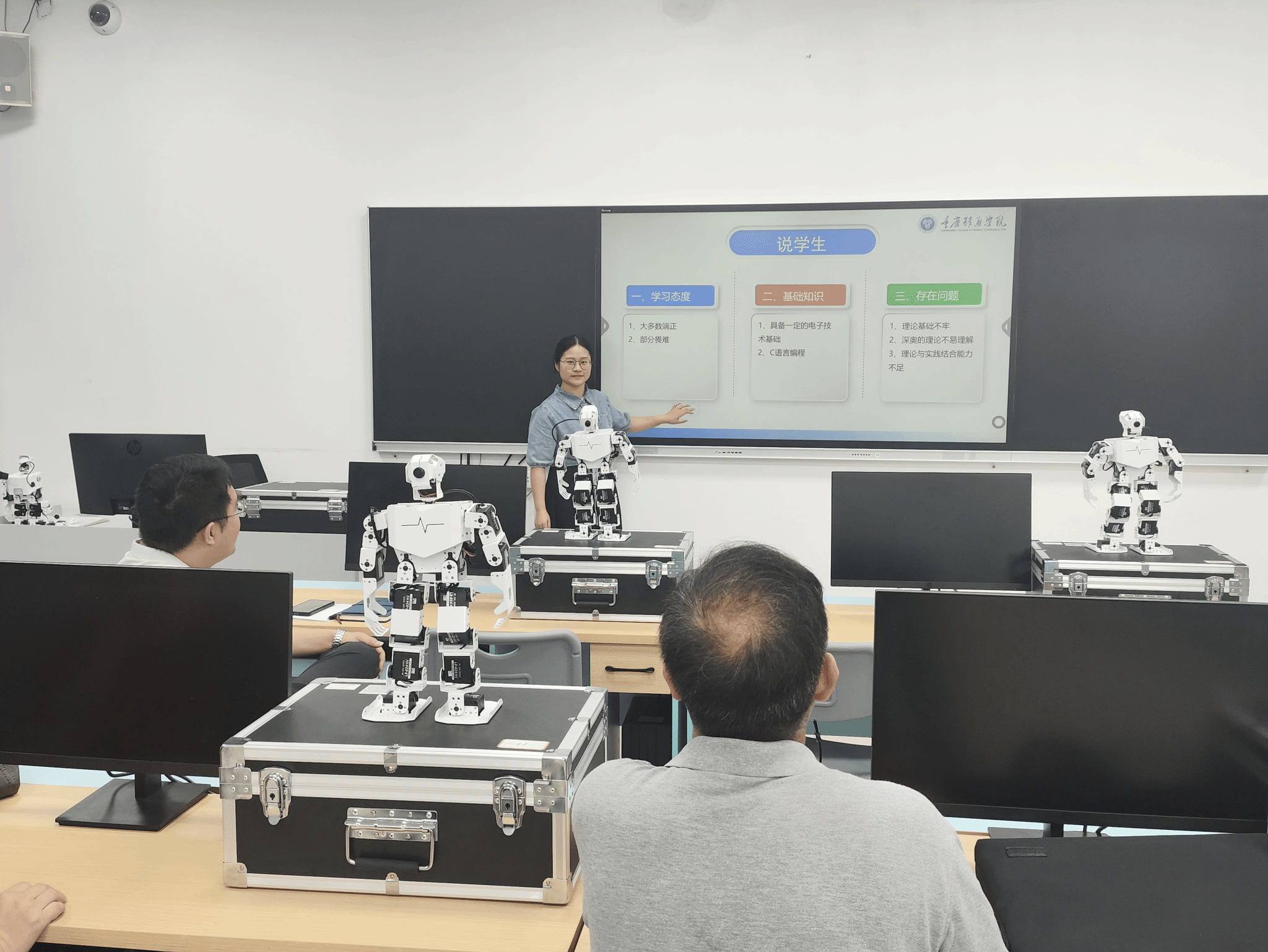 紧接着,智能信息技术教研室主任冯文果老师在S2105教室向教研室教师进行了基层教学汇报。教研室围绕学院教学改革精神,通过教学方法创新提升教学质量,建成多门在线课程、校级一流课程等。同时,积极探索课程思政与信息化教学手段应用,提升教研室教学实力。