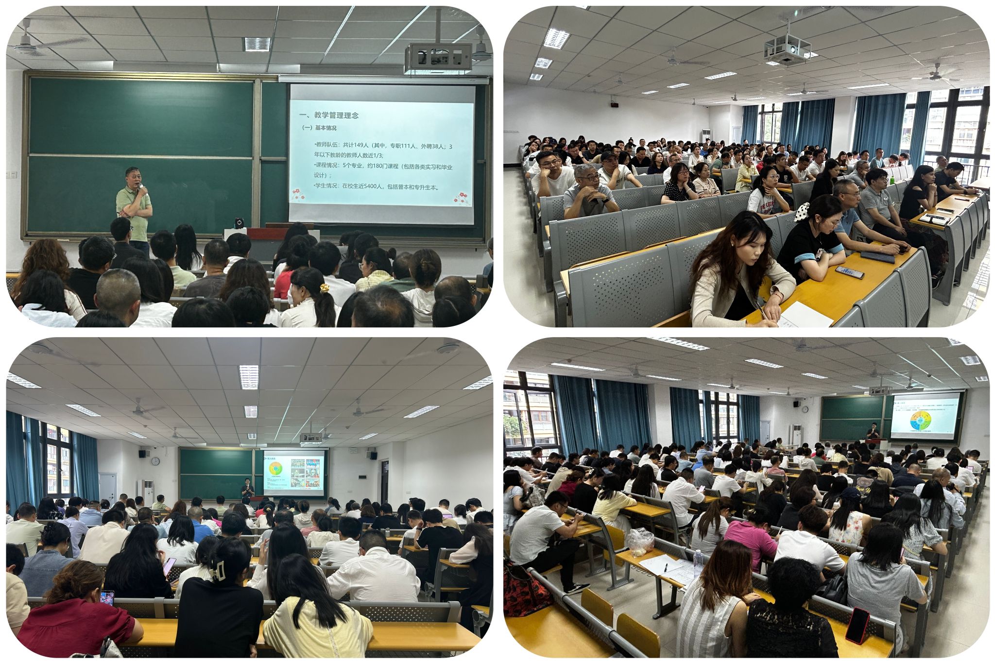 教学副院长唐林建聚焦“规范-质量-发展”三位一体教学管理体系,从理念、实践与成效三层面展开分享。他详细介绍了学院师资结构、教学规范文件、质量监控机制及教师发展支持政策,并展示近年来在课程建设、学科竞赛、教学成果奖等方面取得的突破。唐院长提出,未来将持续深化教学改革,以规范化管理保障教学质量,以教师发展赋能人才培养。