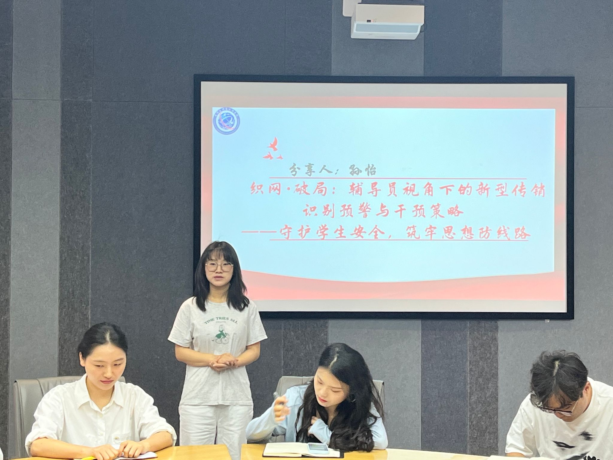 孙怡老师分享了一个关于识别和干预新型传销的真实案例。主角是学院的小 A同学。起初,小A回校修改论文表现正常,但5月26日,一条同学的预警信息引起注意。小A声称在成都做视频剪辑,却无法提供公司名称和办公照片,工作由专科朋友介绍的“工作室”,这很可疑。而且他变得沉默寡言、身形消瘦,频繁向同学借钱,却三个月没向家里要生活费,还极力拉拢同学加入。舍友小赵去“考察”发现,他们住在群租房,室友身份可疑,闭口不谈工作,只带新人吃喝玩乐。