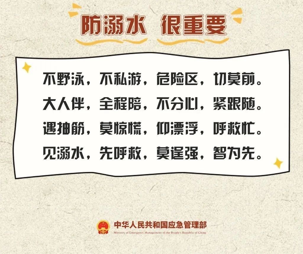 2.如果遇他人溺水,记住“智慧救援”:大声呼救+找漂浮物,别盲目下水!