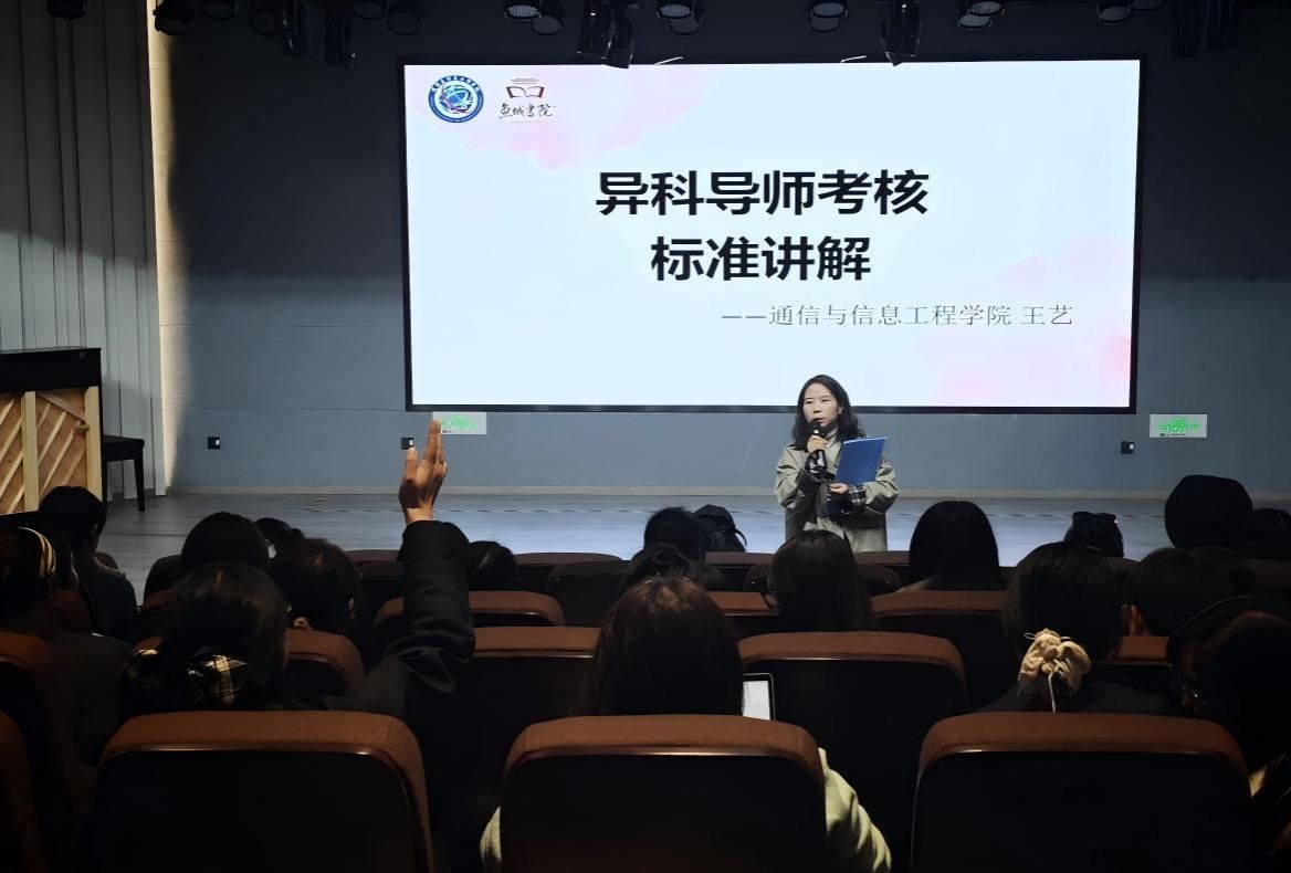 培训最后,通信与信息工程学院王艺老师就《重庆移通学院(合川校区)关于进一步优化全生异科导制工作的通知》《重庆移通学院通信与信息工程学院全生异科导师工作考核指标体系》进行了详细解读。明确本学年工作考核要点、支持机制与导向,强调考核的激励赋能作用。现场异科导师踊跃提问,互动讨论热烈,相关困惑逐一得到解答。