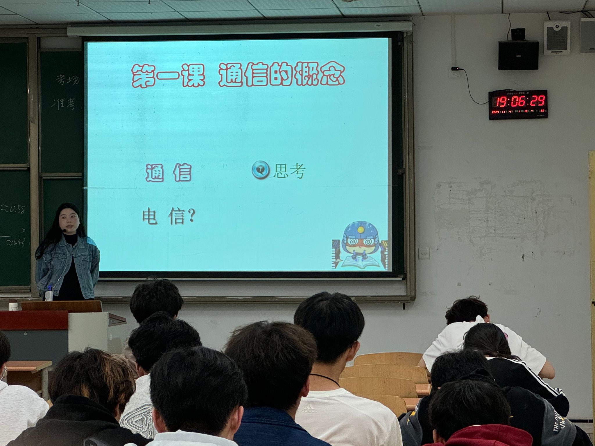 课程伊始,杨慧娉老师详细介绍了通信的概念和历史。从古代的烽火传信、飞鸽传书,到近现代的电报、电话等通信方式的演变,丰富的课件资料配合生动有趣的讲解,让新生们清晰地了解到通信发展的漫长历程,仿佛置身于通信历史的长河之中。同学们聚精会神地聆听,不时为人类通信智慧的结晶而发出赞叹。