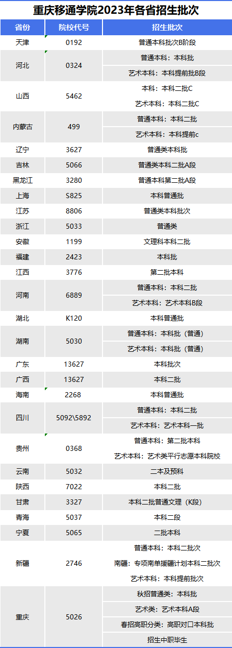 2023年各省招生批次