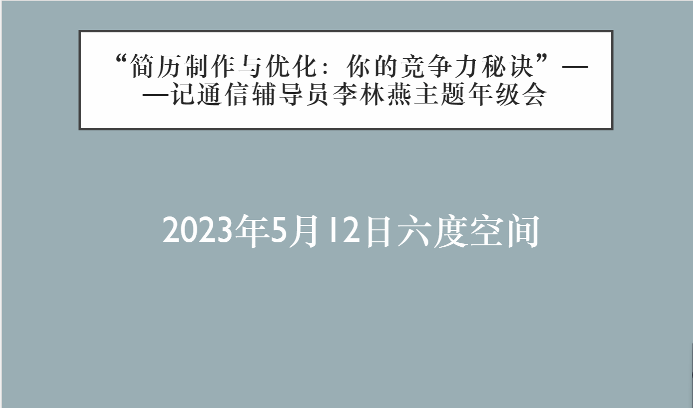 2023年5月12日在毕业季的关键节点,通信专业辅导员李林燕聚焦学生求职刚需在六度空间105度剧场精心筹备并主持了一场干货满满的主题年级会,为学子们解锁简历制作与优化的关键密码,助力提升职场竞争力。