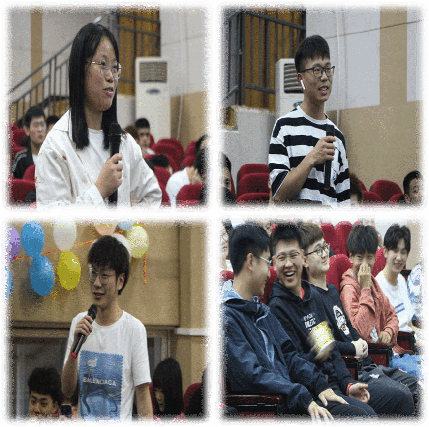 “三人行,必有我师焉。”在我们身边就有许多语言表达能力比较出彩的同学,他们的经验也更能贴近同学们的实际情况。本次年级会,我们请到获得校级主持人大赛一等奖的张家悦同学和多次获得辩论赛奖项的彭渝洋同学给同学们分享如何提高自己的语言表达能力。他们结合自己的亲身经历,总结生活和比赛中的经验,给同学们分享了一些自己的小干货,比如可以多参加学校、学院举办的各种演讲、辩论赛等,以赛促学,不断提升。