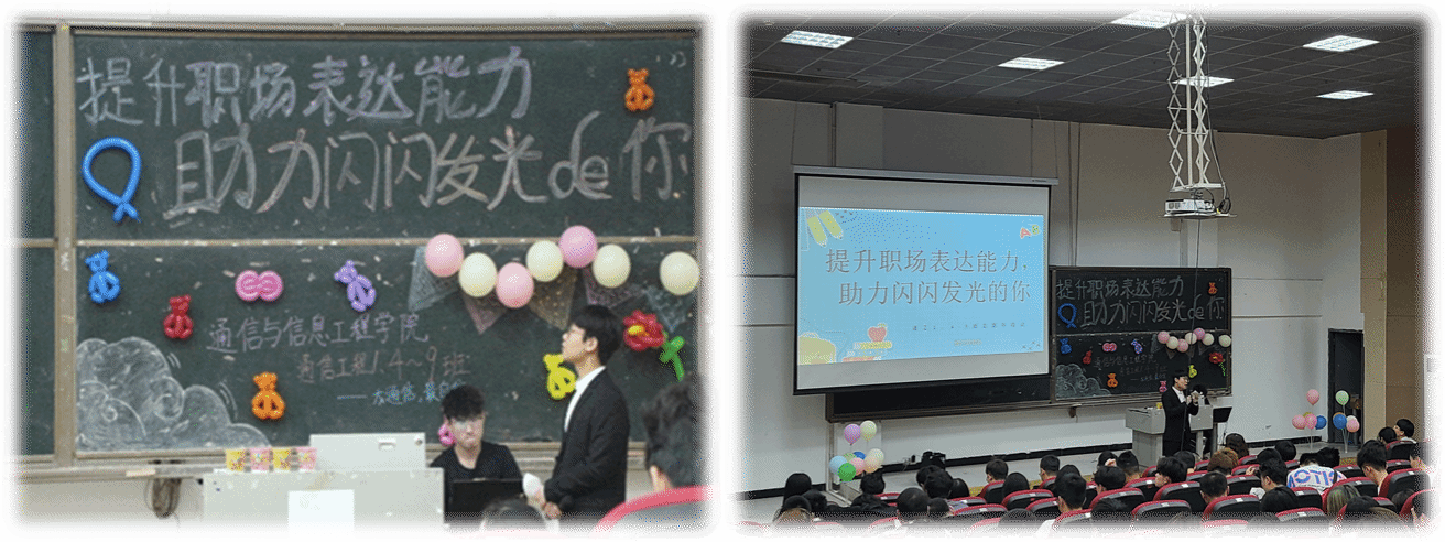 在学校,你是否遇到过这样的情景:在学生组织面试中,往往表达不清,被迫出局;在登台演讲时,往往面红耳赤,手足无措;在汇报工作时,往往心里紧张,词不达意……12月23日晚19:00,通信工程2020级1,4-9班全体同学于第三教学楼3303教室开展了“提升职场表达能力,助力闪闪发光的你”为主题的年级会,旨在让同学们了解在学校、在职场中语言表达能力的重要性,并意识到自身的不足,自觉在以后的学习生活中锻炼语言表达能力,为以后步入职场、社会打下坚实的基础。