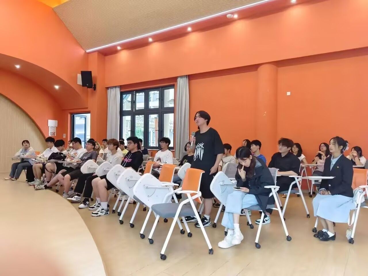在互动交流环节,同学们积极提问,就自己感兴趣的创业政策细节、特定行业的创业前景以及创业过程中的团队组建、资金管理等问题与老师展开深入探讨。有同学表示:“这次年级会让我对创业政策有了全新的认识,也明确了几个很有潜力的创业方向,受益匪浅。”也有同学说道:“之前对创业有想法但很迷茫,现在知道了学校和政府能给予这么多支持,感觉创业之路没那么遥远了。”