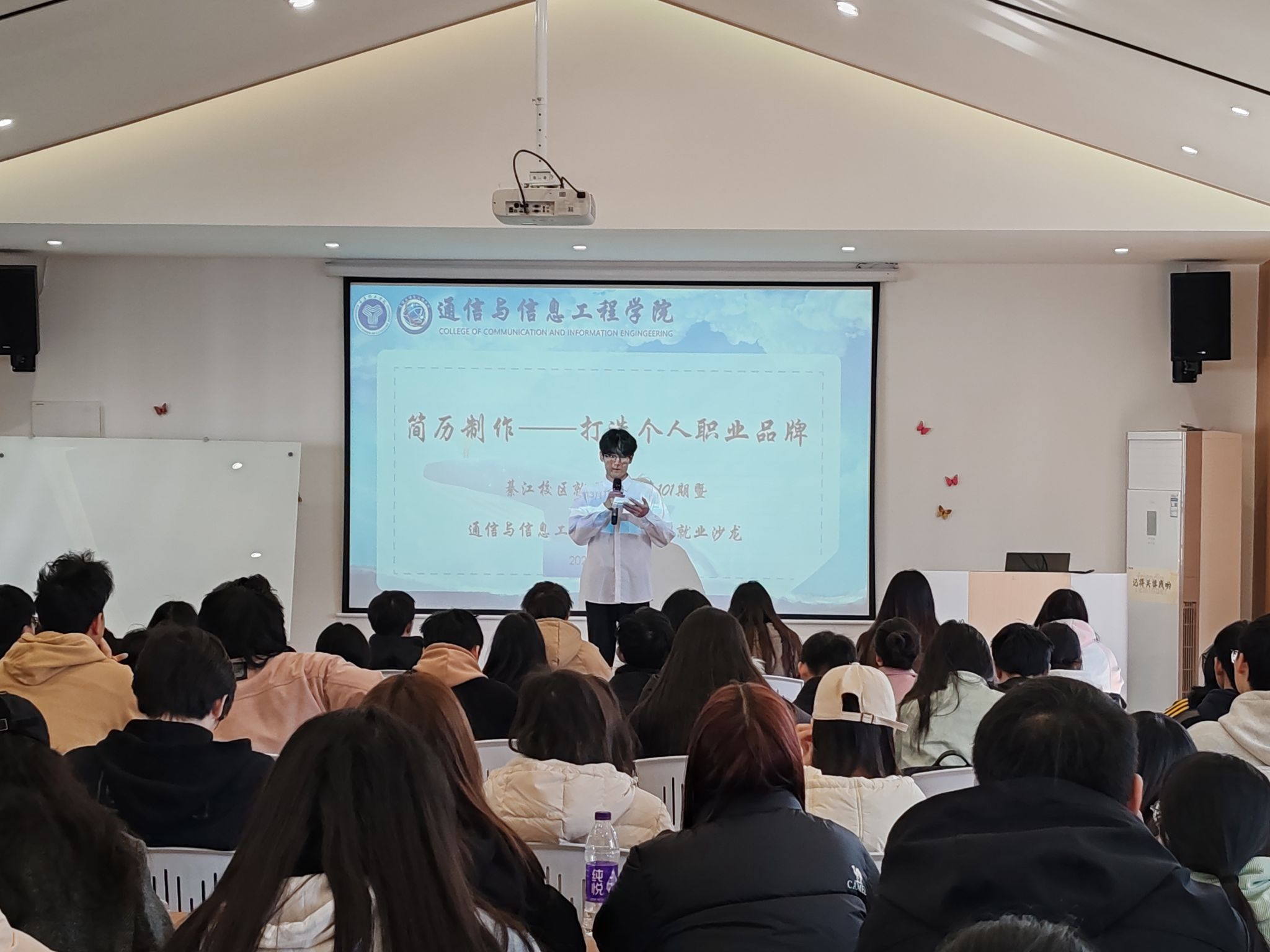 为帮助同学们提升求职技能,增强职业规划意识,通信与信息工程学院团总支就业助理团于2025年3月19日在南江书院庸言·研讨互鉴讲堂成功开展了“简历制作-打造你的个人职业品牌”綦江校区就业沙龙第101期暨通信与信息工程学院第196期。本次沙龙有幸邀请到大健康管理学院辅导员兼学工办主任童学容老师为现场80名同学讲解简历制作。