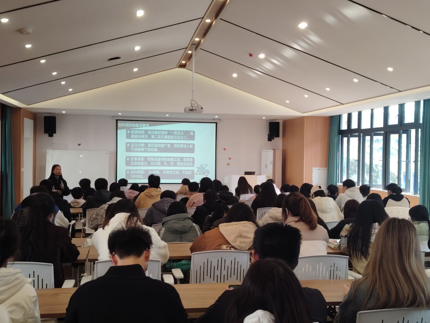 活动最后,童学容老师向同学们谈到简历制作各板块的注意事项,她指出,基本信息应确保无误、求职意向应清晰明确、对实践经历熟悉以及自我评价应简介并突出重点。同时,童学容老师建议同学们积极参加各类比赛,丰富校园经历,进而提升综合素养,不断完善简历,提高自身核心竞争力。