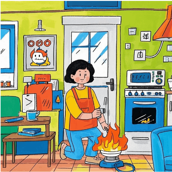 3.正确使用燃气设备,做饭时不离厨房,使用后关闭阀门。定期检查燃气胶管,如有老化、松动立即更换。家中常备灭火器、灭火毯等消防器材,学会正确使用方法。