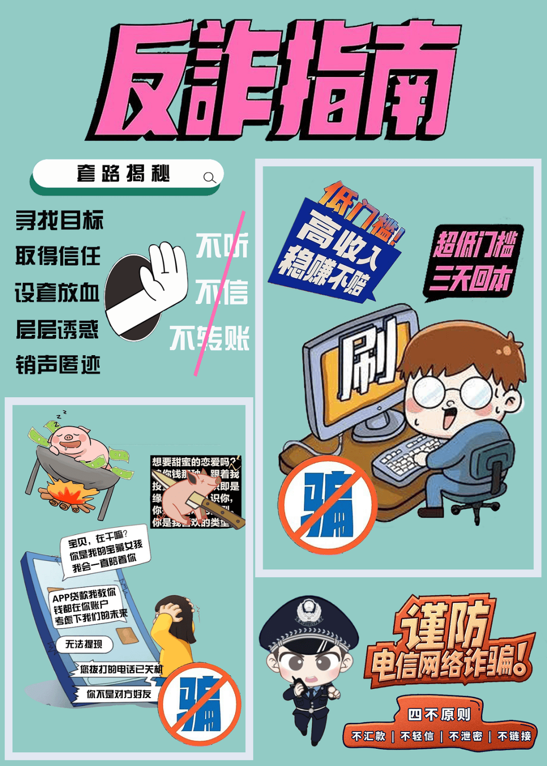 4. 拒绝诱惑:面对“高额回报”“低价好物”等诱惑,保持清醒,天上不会掉馅饼。