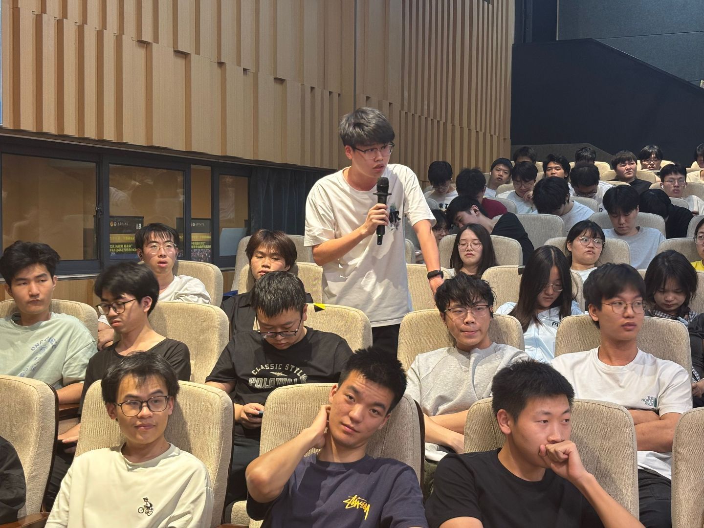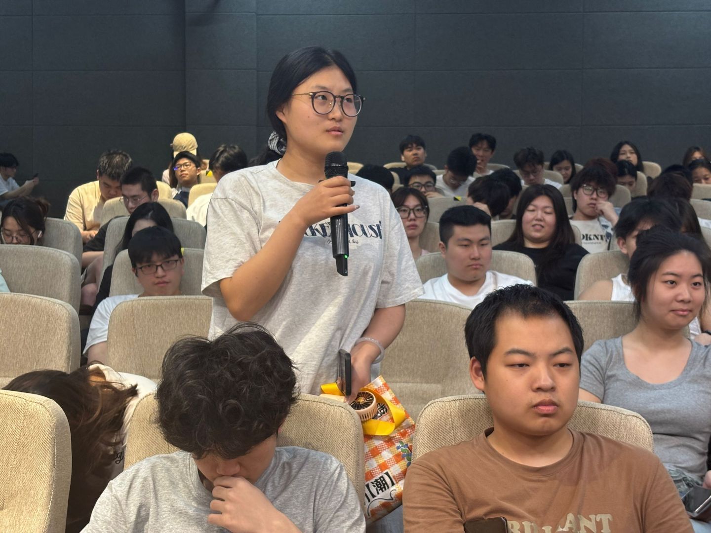 在提问环节,同学们踊跃发言。针对即将迈入大四阶段的同学,提出实习的启动时机是否适宜;也有同学踊跃发问除专业课外,还需掌握哪些技术技能;紧接着又有同学提出如何获取实习职位。