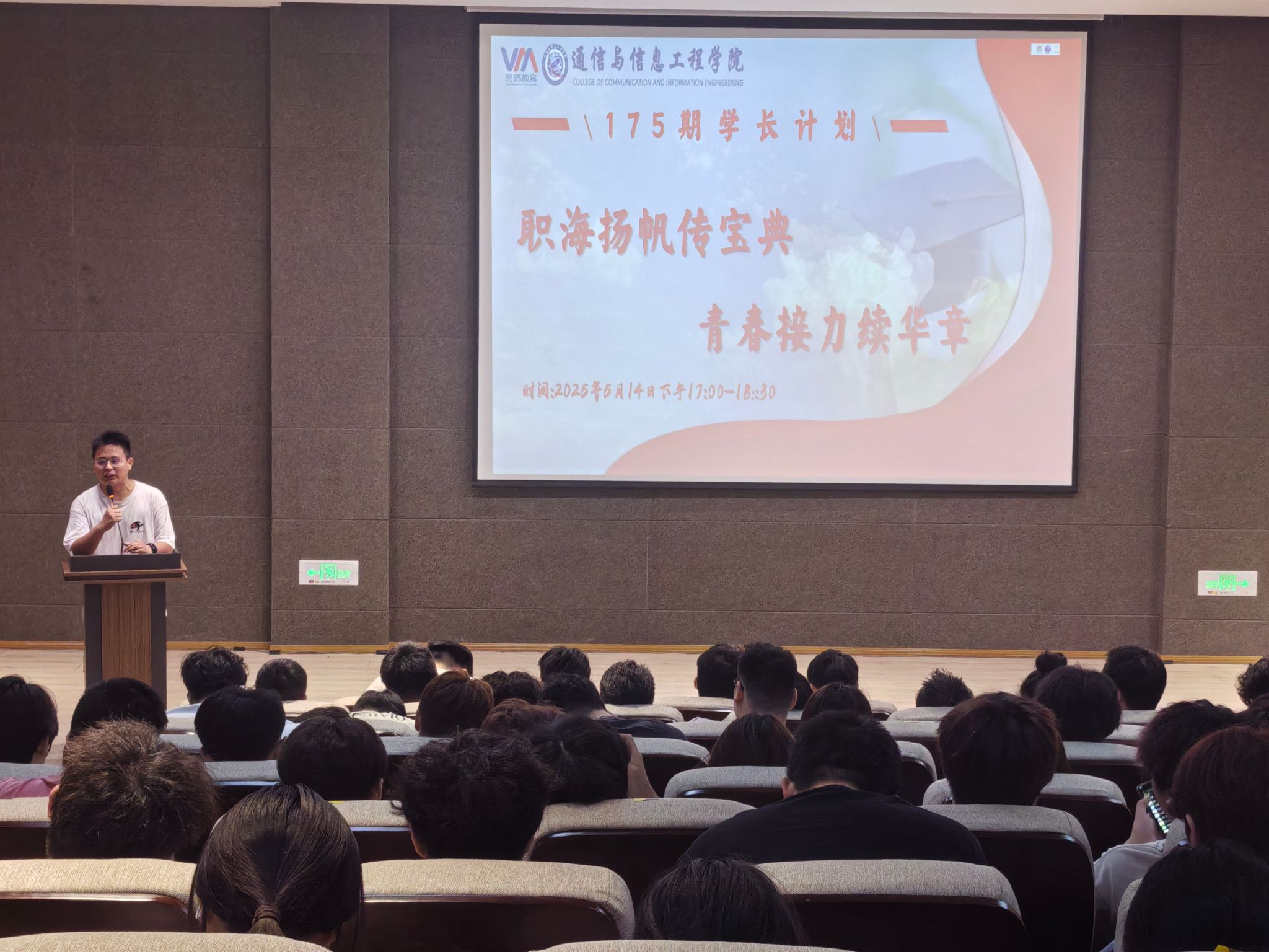 本次通信与信息工程学院第175期学长计划活动,通过两位优秀学长分享的实习故事、职场技巧,以及深度互动的职业指导,既为同学们铺就了从校园迈向职场的加速跑道,也为迷茫中的学子点亮了前行的灯塔。