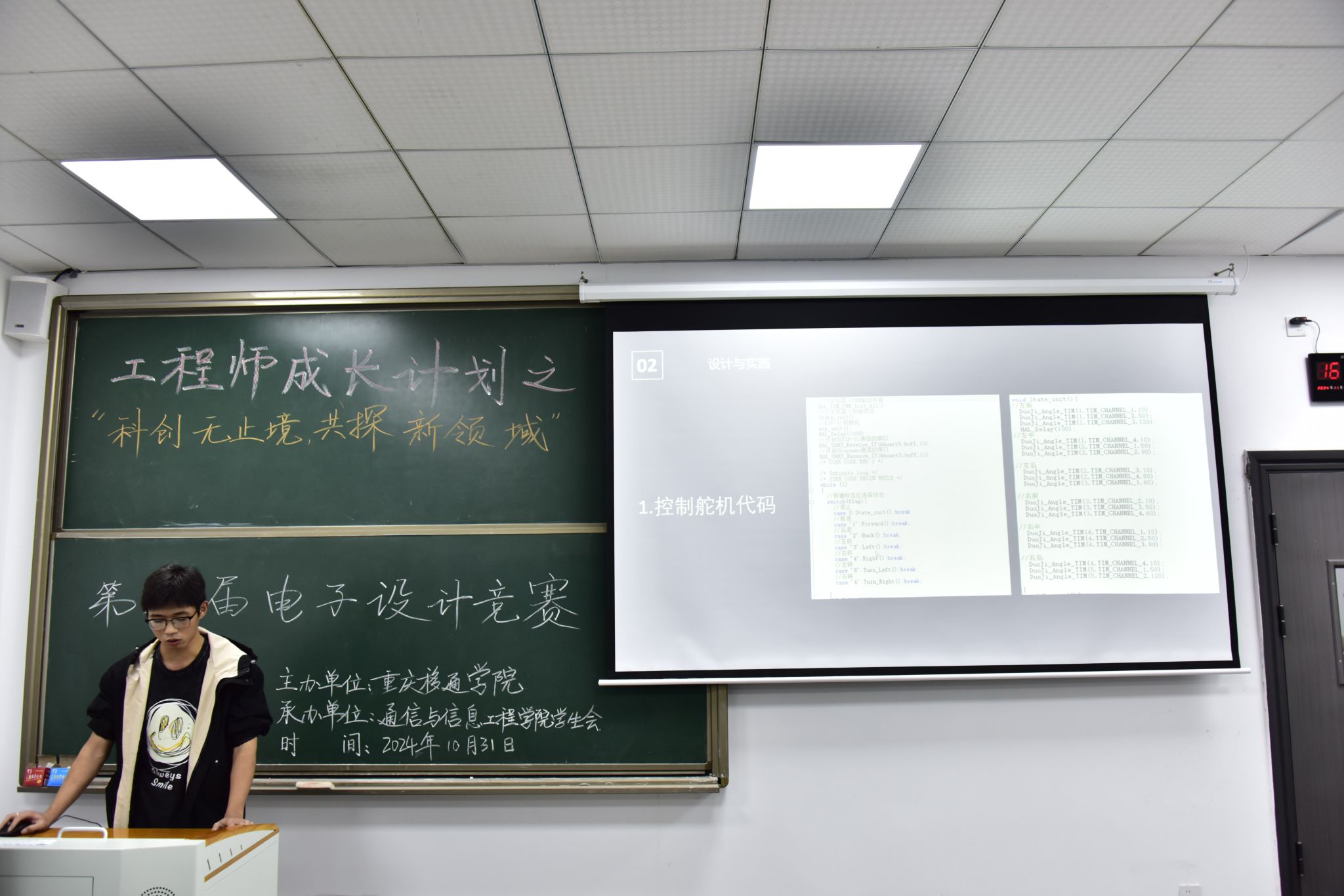 11月6日下午四点,备受瞩目的电子设计竞赛答辩环节在第四教学楼4106教室准时开始。本次答辩共有77支参赛队伍参与,每支队伍依次登台展示他们的作品。在答辩过程中,参赛者们充分展现了自身的专业素养,并体现出了良好的团队协作精神。