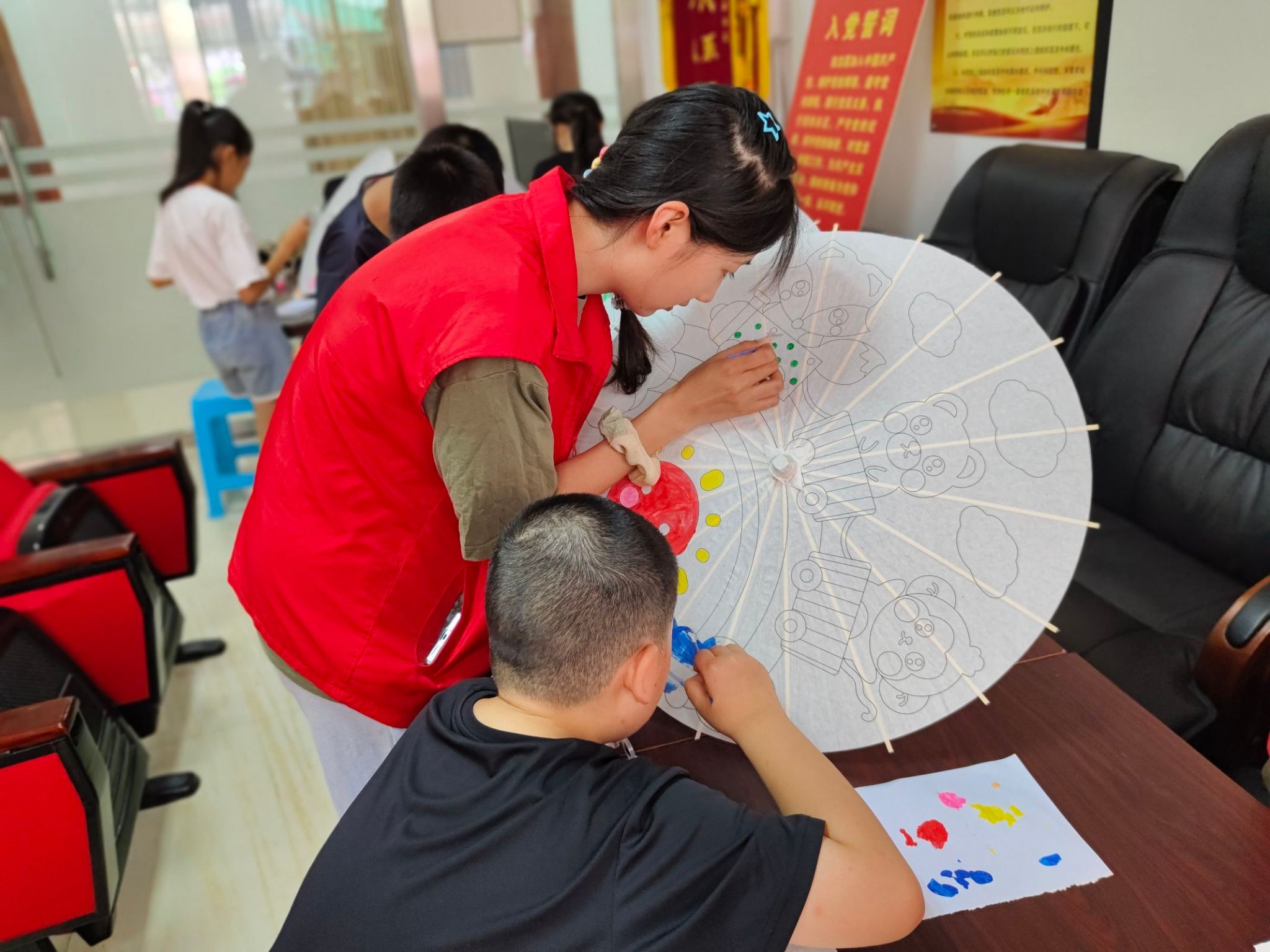在文化之旅的最后,青少年以夏日为灵感,将细腻心语融入五彩斑斓的画笔中,于帆布包与纸伞之上尽情挥洒。他们肩并肩,心连心,用画笔勾勒,以文字点缀,共同织就一幅幅专属于他们的绚烂画卷。这份创意的自由流淌与彼此间的默契共鸣,不仅是对自然之美的深情颂歌,更是对文学与艺术结合最纯粹、最动人的诠释。